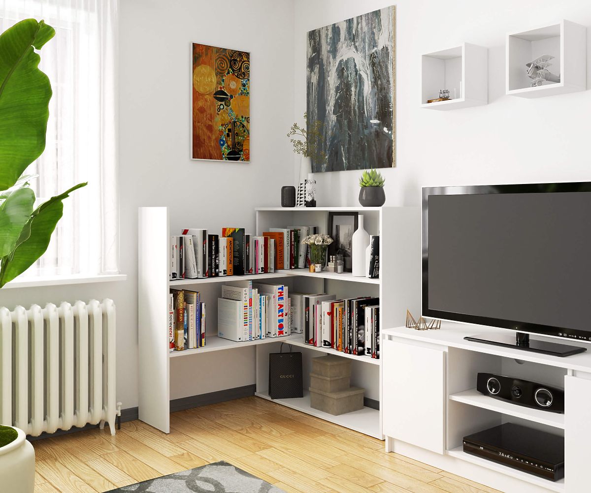 Raftul reglabil mini TWIST este unic, putând fi extins sau transformat într-un raft de colț. Datorită caracteristicilor sale, se potrivește perfect în orice tip de living, birou sau cameră de copii.