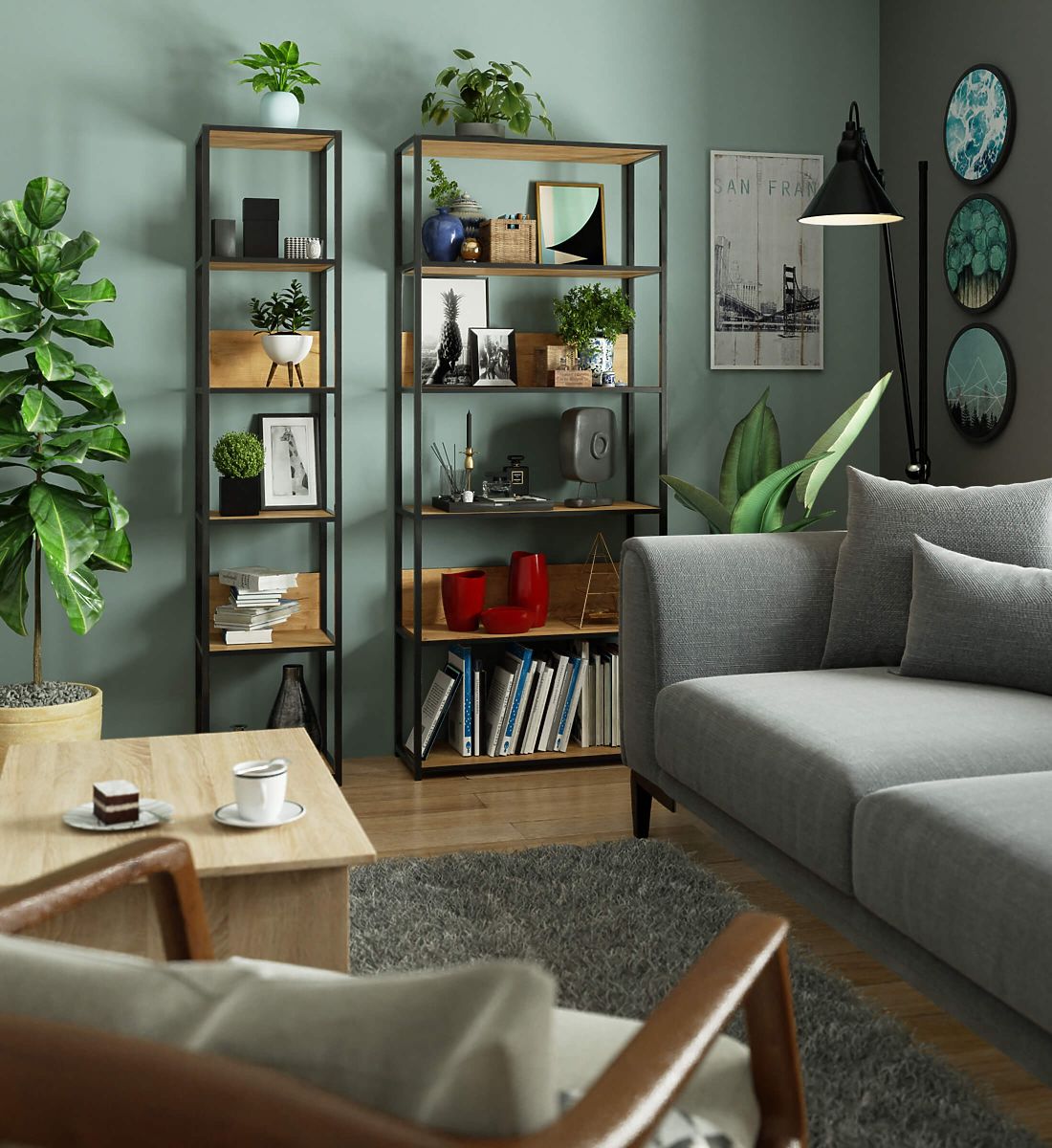- aspect elegant: raftul se remarcă prin forma sa simplă, cadrul este negru, iar polițele sunt în culoarea stejar craft,