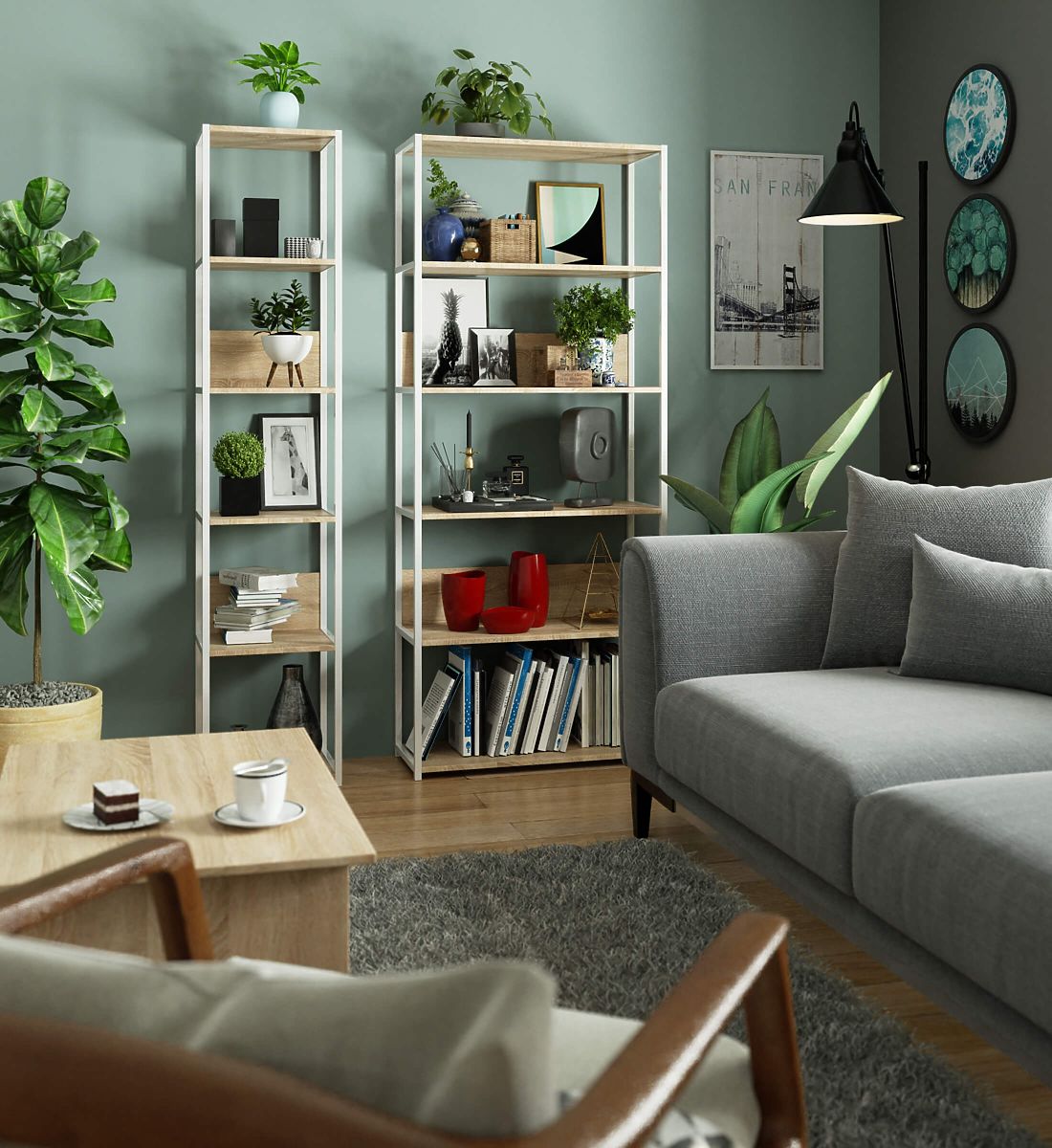 Raftul metalic de tip loft este un mobilier practic și modern, potrivit atât pentru living, cât și pentru birou. Raftul are un cadru metalic alb și 6 rafturi în culoarea dub sonoma. Rafturile sunt fabricate din placă laminată cu grosimea de 16 mm. Este un material durabil și rezistent, caracterizat printr-o rezistență ridicată la abraziune. Marginile sunt protejate cu bandă ABS, asigurându-se că mobilierul va arăta bine chiar și în cazul unei utilizări zilnice intense. Raftul este echipat cu 6 rafturi pe care puteți plasa obiecte pe care doriți să le expuneți sau să le aveți la îndemână. În ansamblu, are un aspect foarte stilat și modern.