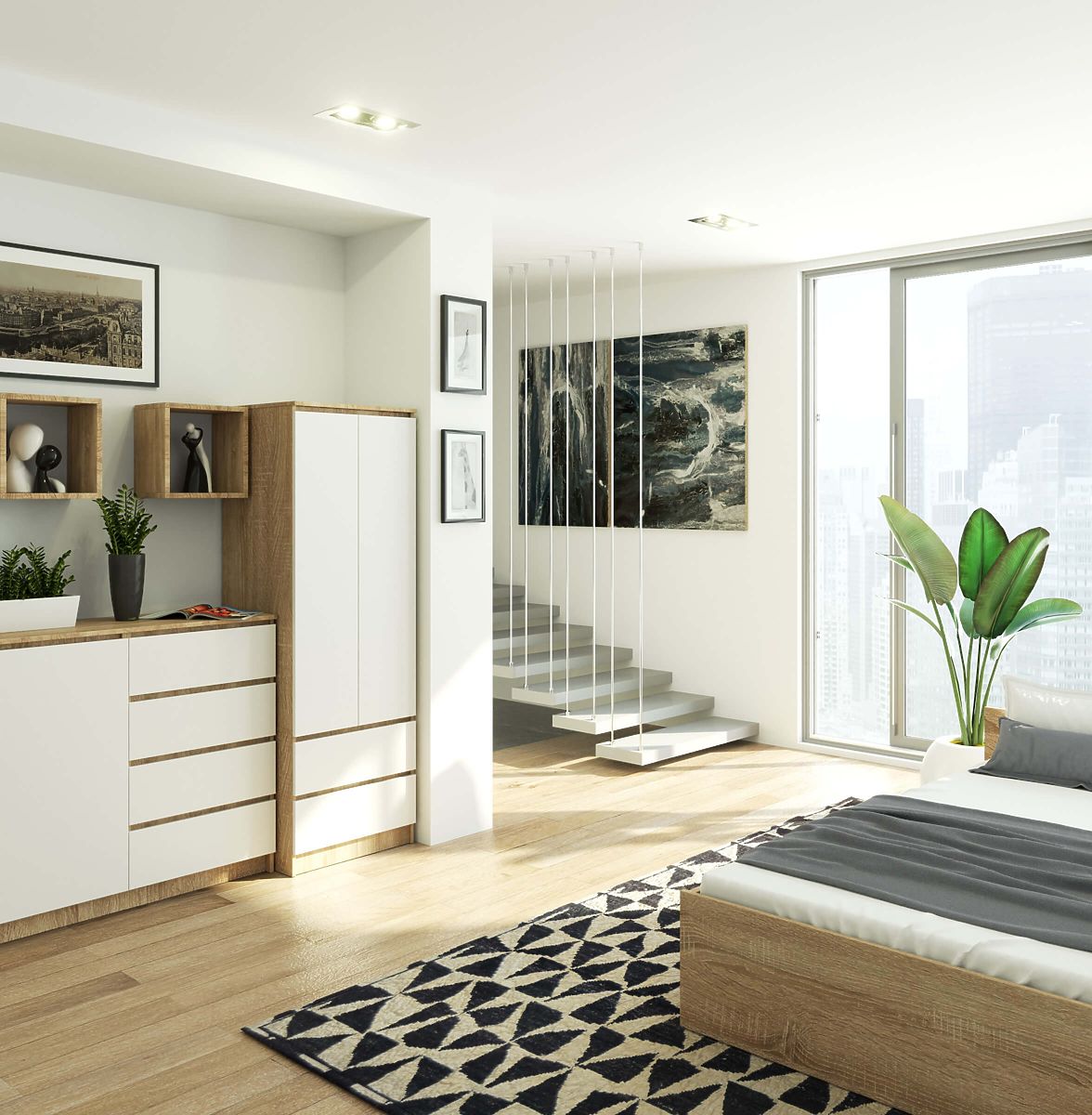 Dulapul din stejar sonoma cu front alb completează perfect mobilierul din living, holul mare de intrare sau dormitorul exclusivist. Culoarea bine aleasă a mobilierului face ca dulapul să arate elegant în încăperi moderne și cu decor tradițional. Dulapul de 60cm are două sertare adânci. Ghidajele metalice moderne de înaltă calitate asigură o deschidere și închidere silențioasă și foarte ușoară a sertarelor. Ca parte a mobilierului de dormitor, dulapul este util pentru rochii, pijamale, cămăși, pantaloni, șosete, precum și pentru pături, huse de rezervă pentru lenjerie de pat și cearșafuri. Ca element de echipare a holului, mobilierul este potrivit pentru depozitarea hainelor de exterior, pălăriilor sau eșarfelor. Partea dulapului deasupra sertarelor este închisă cu uși duble și echipată cu o bară rezistentă pentru umerașe, deasupra căreia se află un raft spațios. Mobilierul este realizat din placă laminată de înaltă calitate, rezistentă la uzură, iar marginile sale sunt finisate cu bandă ABS durabilă.
