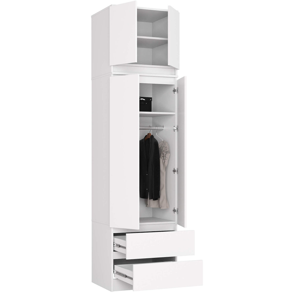 Dulap alb cu suprastructură, 2 uși și 2 sertare, înălțime 234 cm. .. mai mult