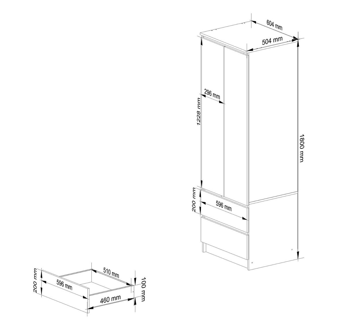 DULAP STAR K60 2 UȘI, 2 SERTARE Fabricat din placă laminată de 16mm rezistentă la abraziune.