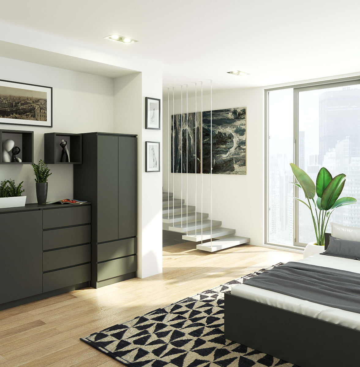 Dulap cu două uși și două sertare, culoare grafit gri. .. mai mult