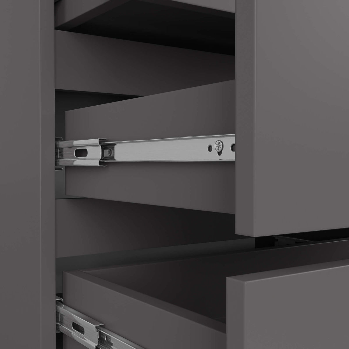 - Sertarele se mișcă pe șine metalice cu bile