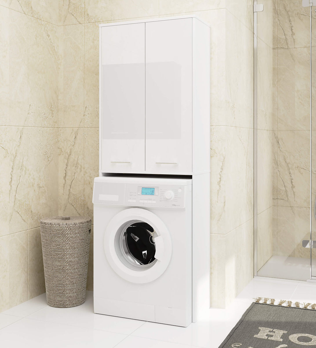 Dulap de baie alb lucios pentru spațiu deasupra mașinii de spălat. .. mai mult