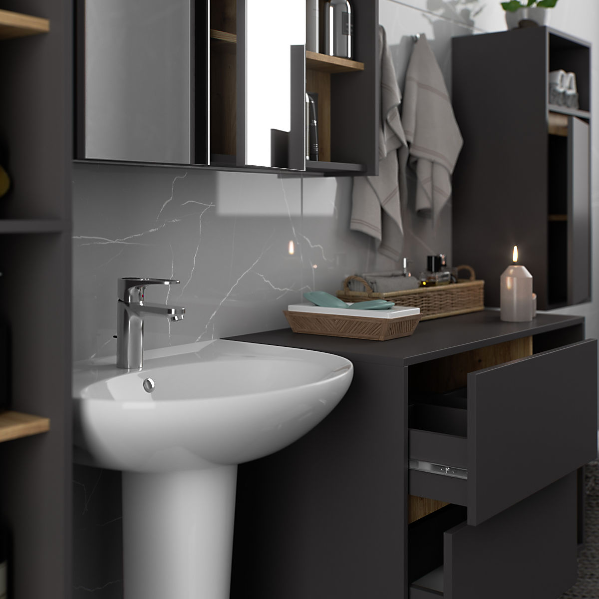 Lukahome.ro » Bathroom & Toilet / Baie dulapuri / DULAP SUSPENDAT PENTRU BAIE VAMI W35 1D 1W GRAFIT GRI / STEJAR ARTISAN