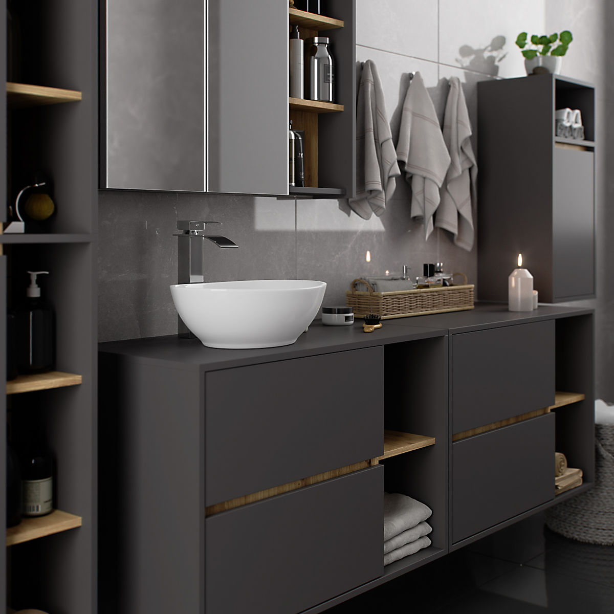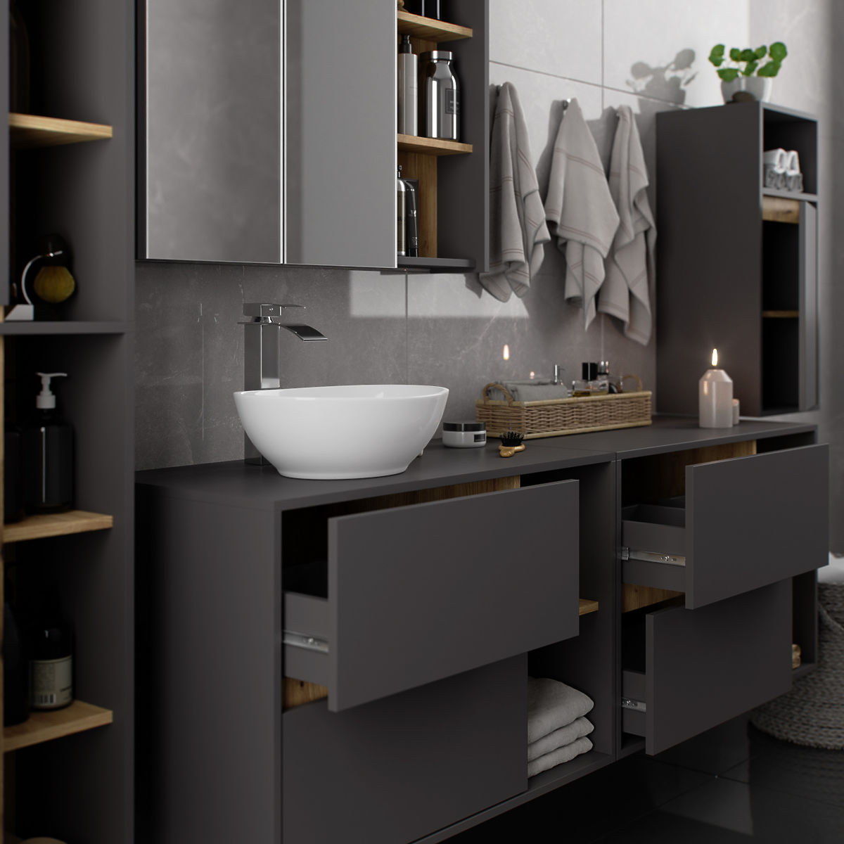 Dulapurile de baie completează perfect echipamentul băii, oferind spațiul necesar pentru toate cosmeticele și detergenții și adăugând un anumit stil băii. Dulapurile spațioase facilitează menținerea ordinii în cameră, ceea ce influențează favorabil estetica interiorului. Colecția VAMI se remarcă printr-o coloristică stilată atrăgătoare – corpul și fronturile au aceeași culoare, în timp ce culoarea interioară este diferită.