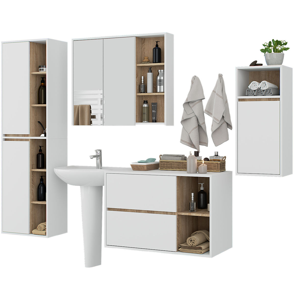 Lukahome.ro » Baie și toaletă / Seturi de baie / SET DE MOBILIER DE BAIE SUSPENDAT VAMI ALB / STEJAR SONOMA