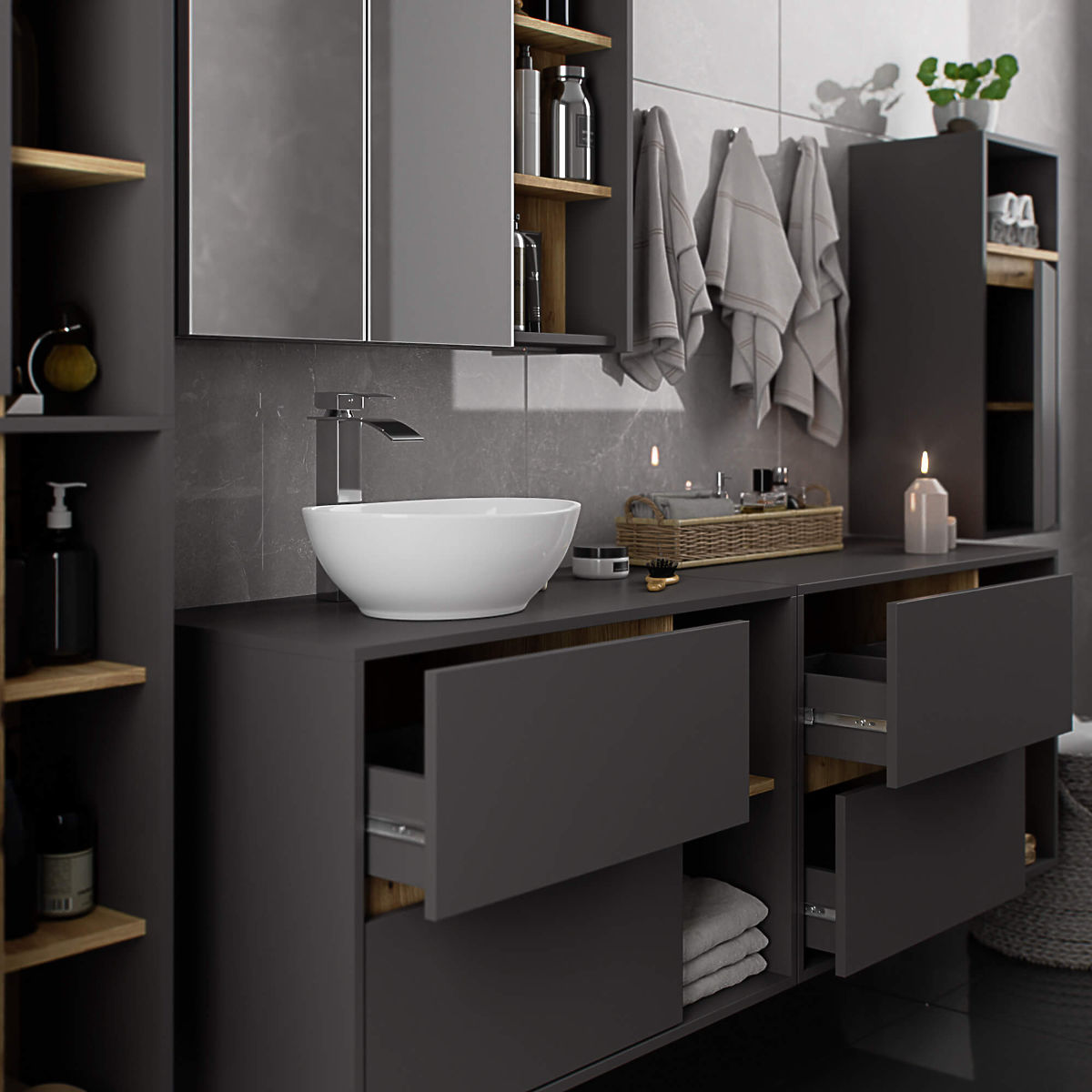 Lukahome.ro » Baie și toaletă / Dulapuri de baie / DULAP DE BAIE SUB LAVOAR CU ORIFICII VAMI W90 UM 2SZ 2P GRAFIT GRI / DUB ARTISAN
