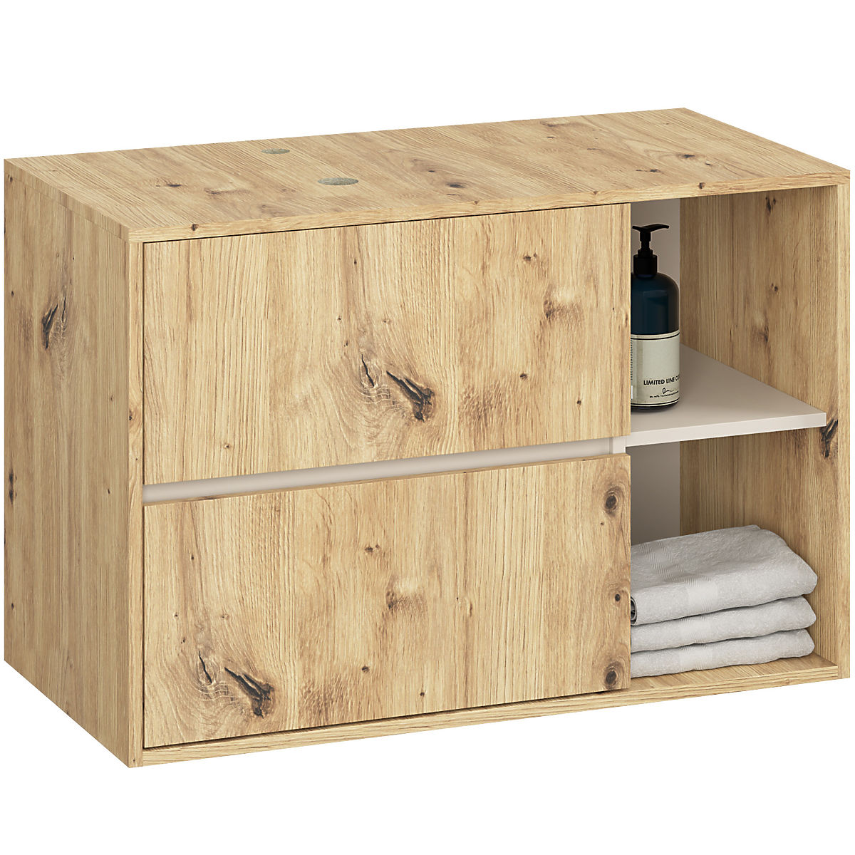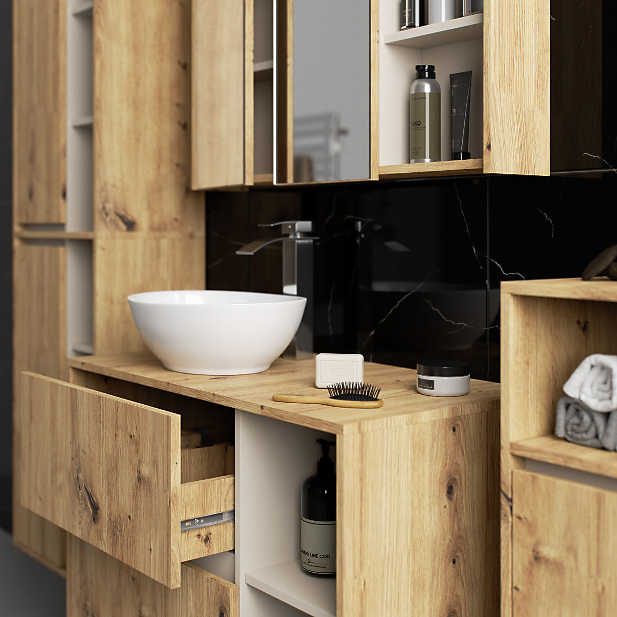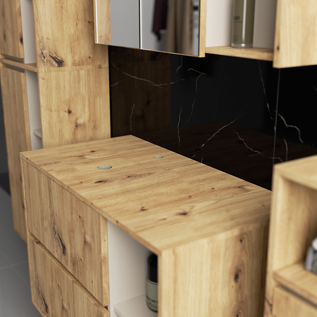 Lukahome.ro » Baie și toaletă / Seturi de baie / SET DE MOBILIER DE BAIE SUSPENDAT CU ORIFICII VAMI STEJAR ARTISAN / CAȘMIR
