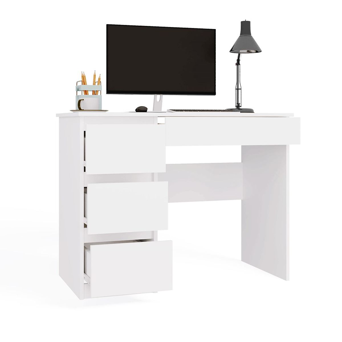 Birou alb cu 4 sertare, model Mijas Stânga. .. mai mult