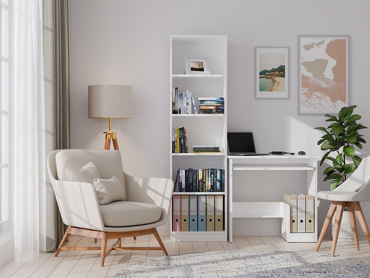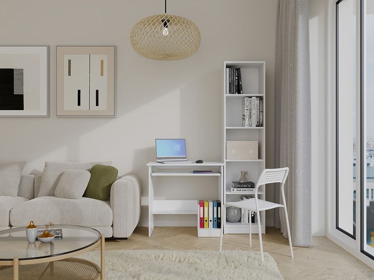 Biroul ROSA este un mobilier compact și foarte funcțional, ideal pentru spații mici - fie că este vorba de camera unui copil, a unui student sau de un birou de acasă. Datorită designului minimalist și culorii albe mate, biroul se potrivește perfect în interioare moderne și mărește optic spațiul.