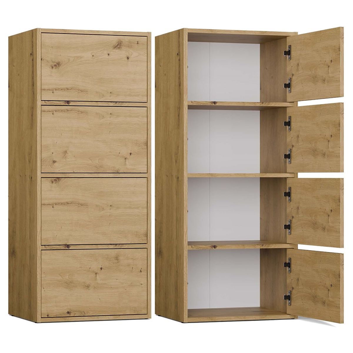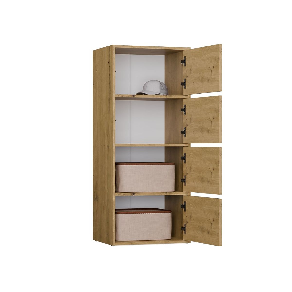 Datorită rafturilor spațioase ascunse în spatele ușilor netede, comoda oferă mult spațiu de depozitare și facilitează menținerea ordinii în orice spațiu.