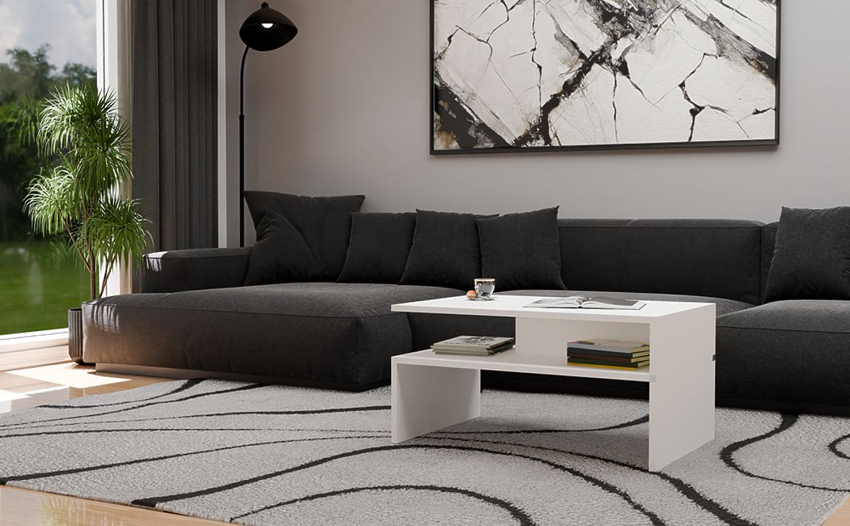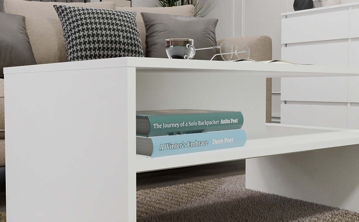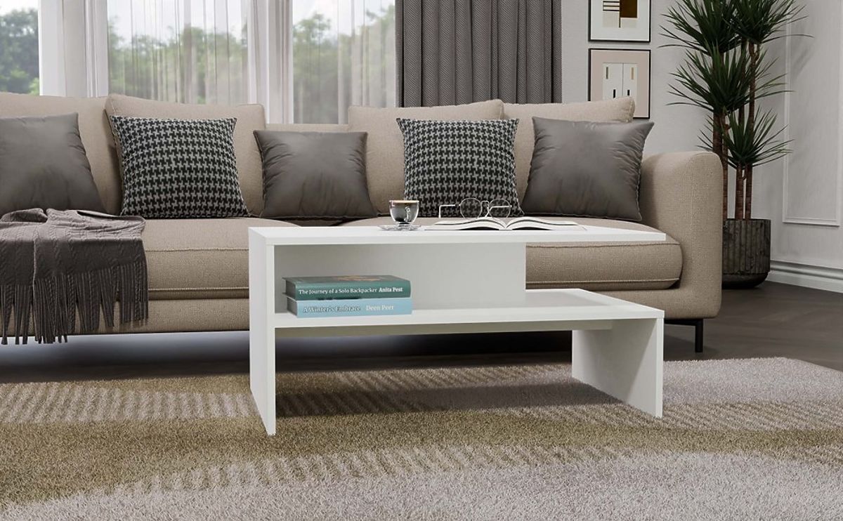 Măsuță de cafea modernă, albă, cu design simplu și elegant. .. mai mult