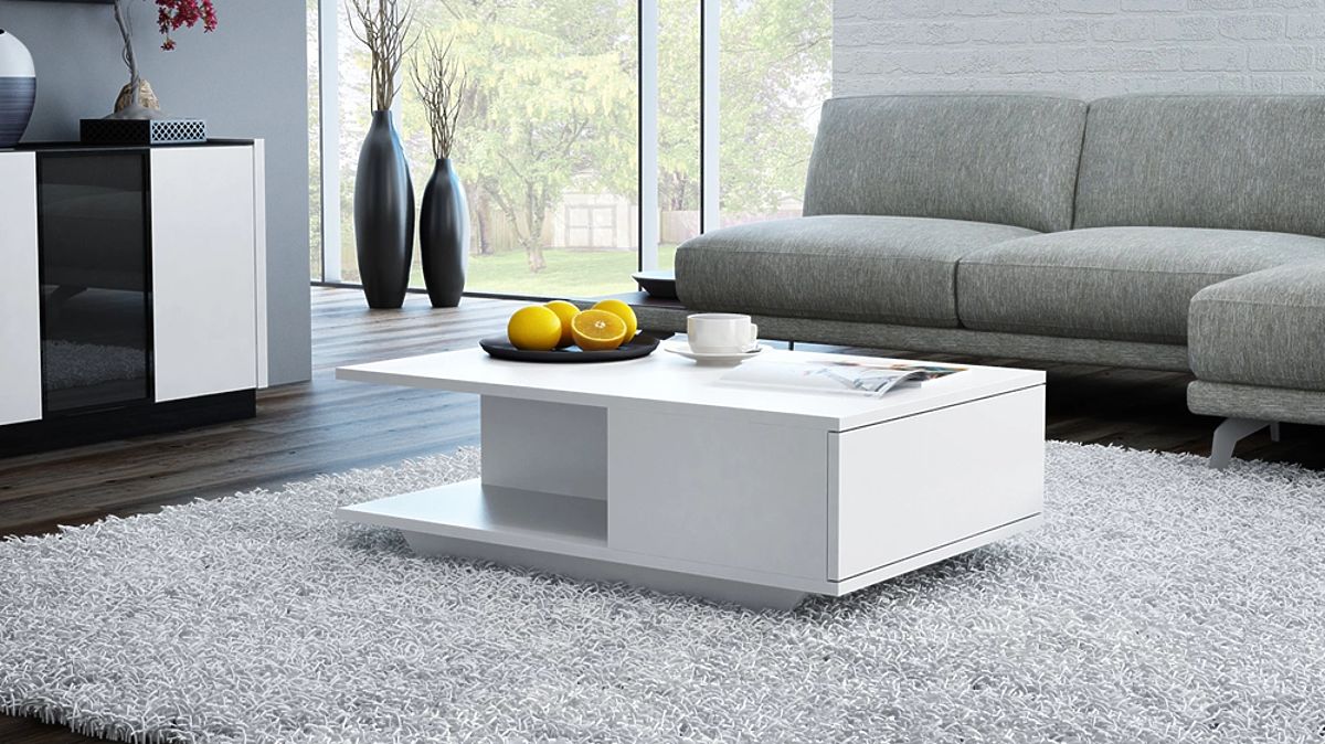 Masă de cafea albă cu spațiu de depozitare funcțional. .. mai mult