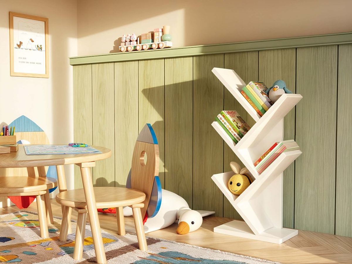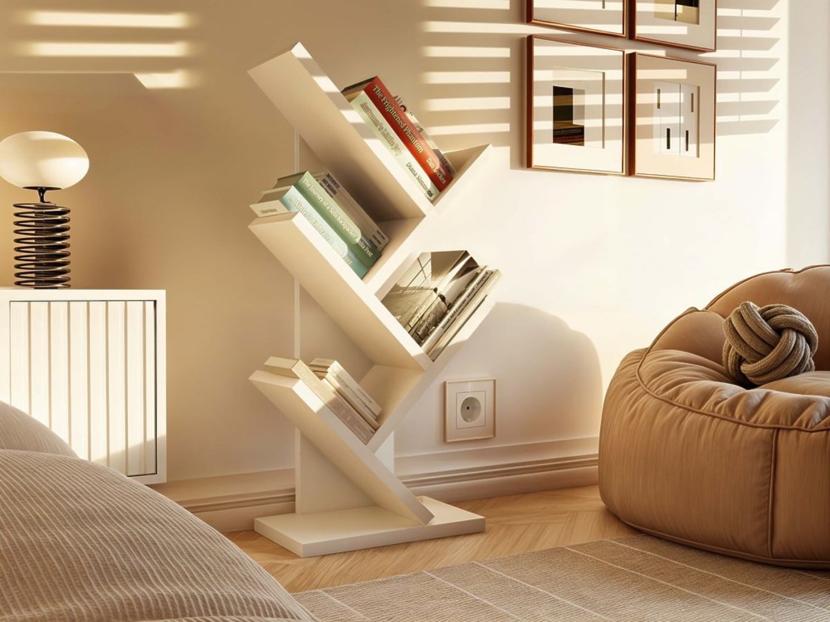 4 polițe înclinate deschise – ideale pentru cărți, dosare, decorațiuni sau jucării