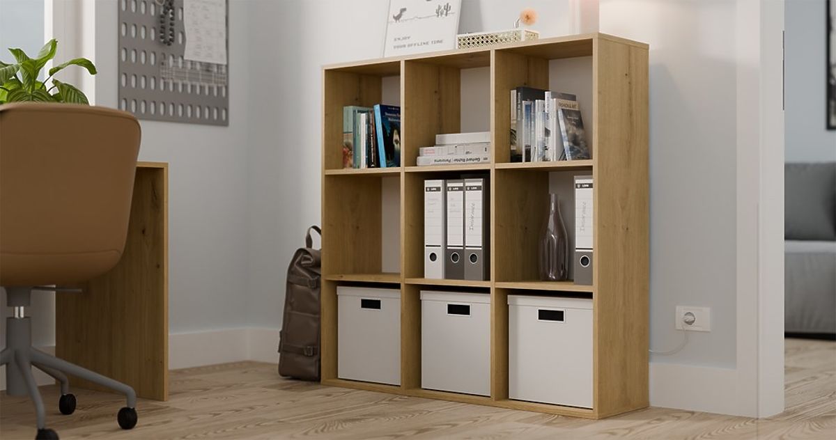 Raft modern MALAX 3x3 H cu 9 compartimente și panou spate solid. .. mai mult
