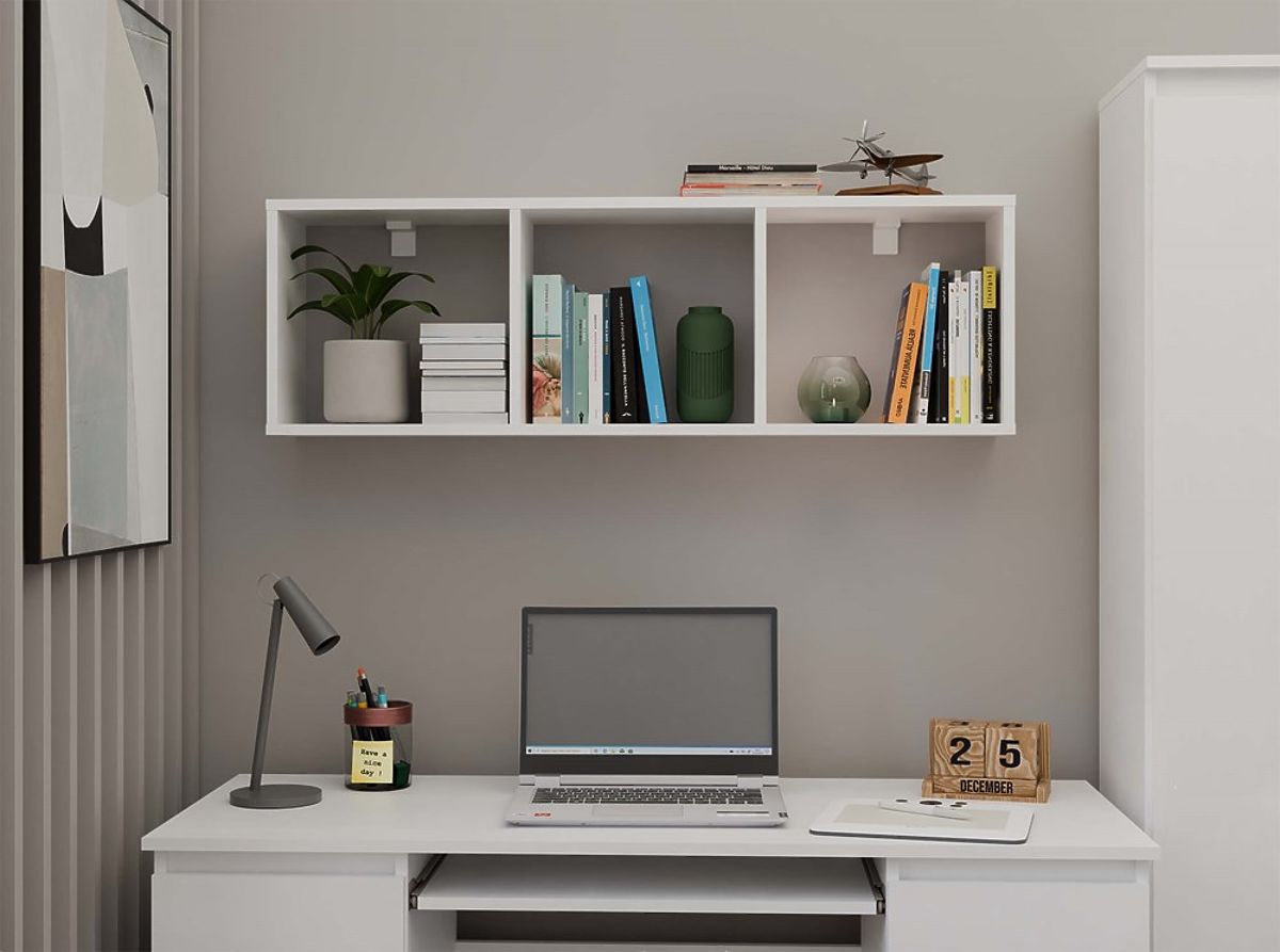 Raftă suspendată COBI 1X3 - Raft de perete modern, 3 compartimente, alb mat