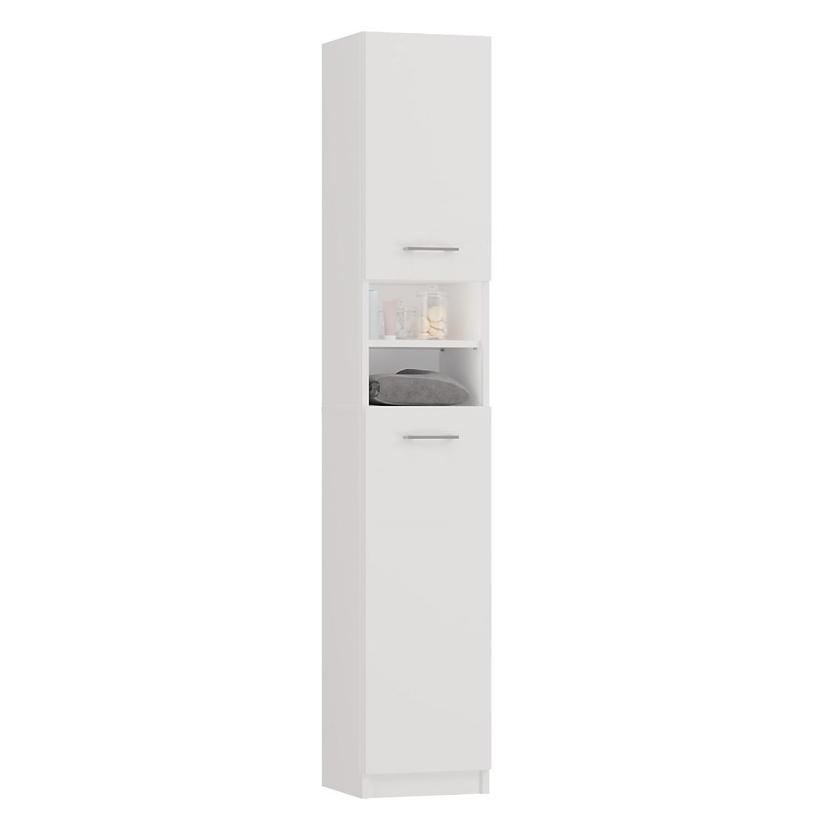 Dulap de baie alb mat cu rafturi practice. .. mai mult