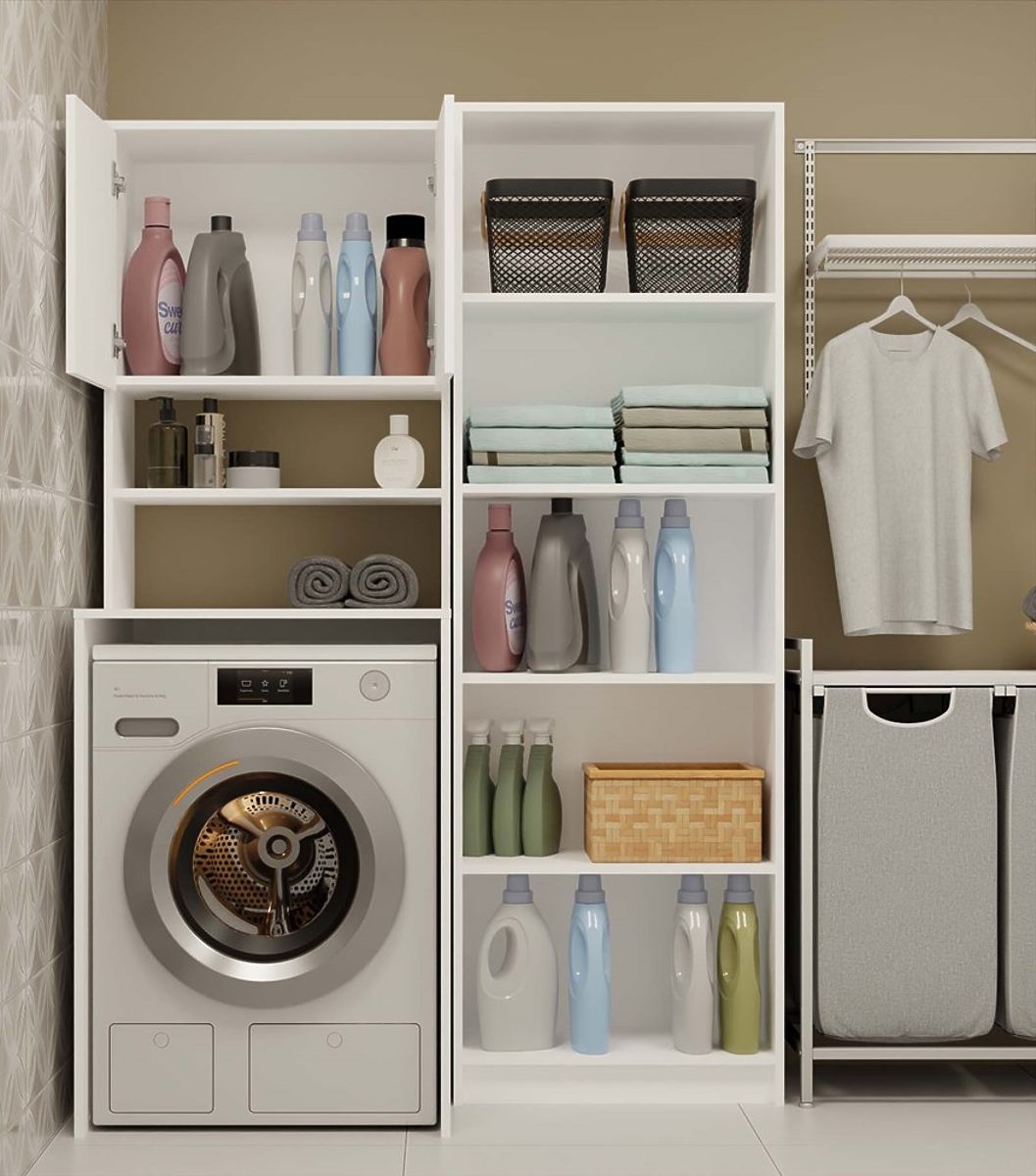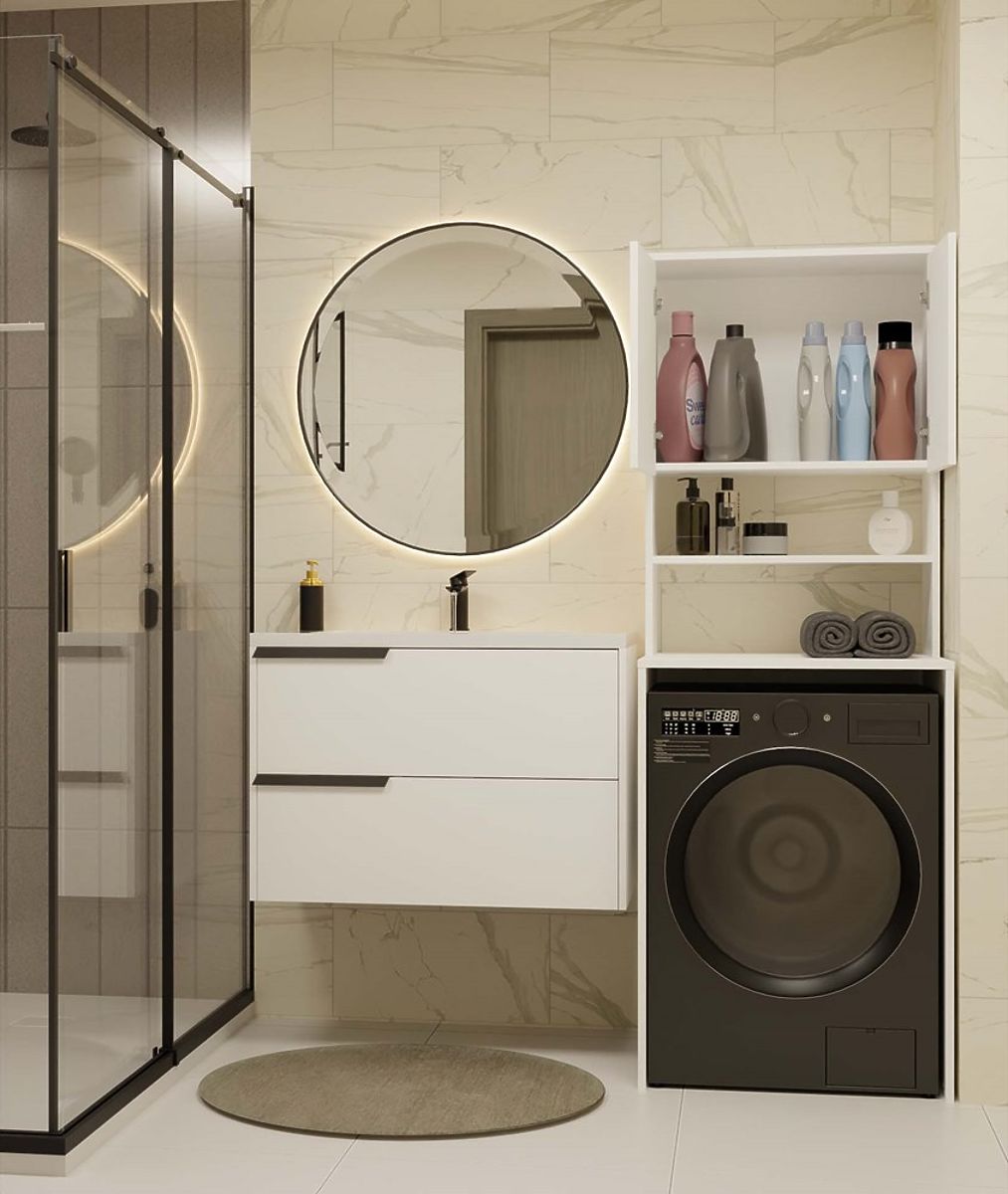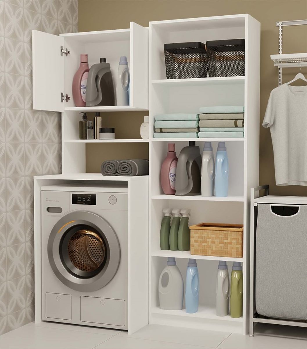 Raft modern pentru baie deasupra mașinii de spălat. .. mai mult