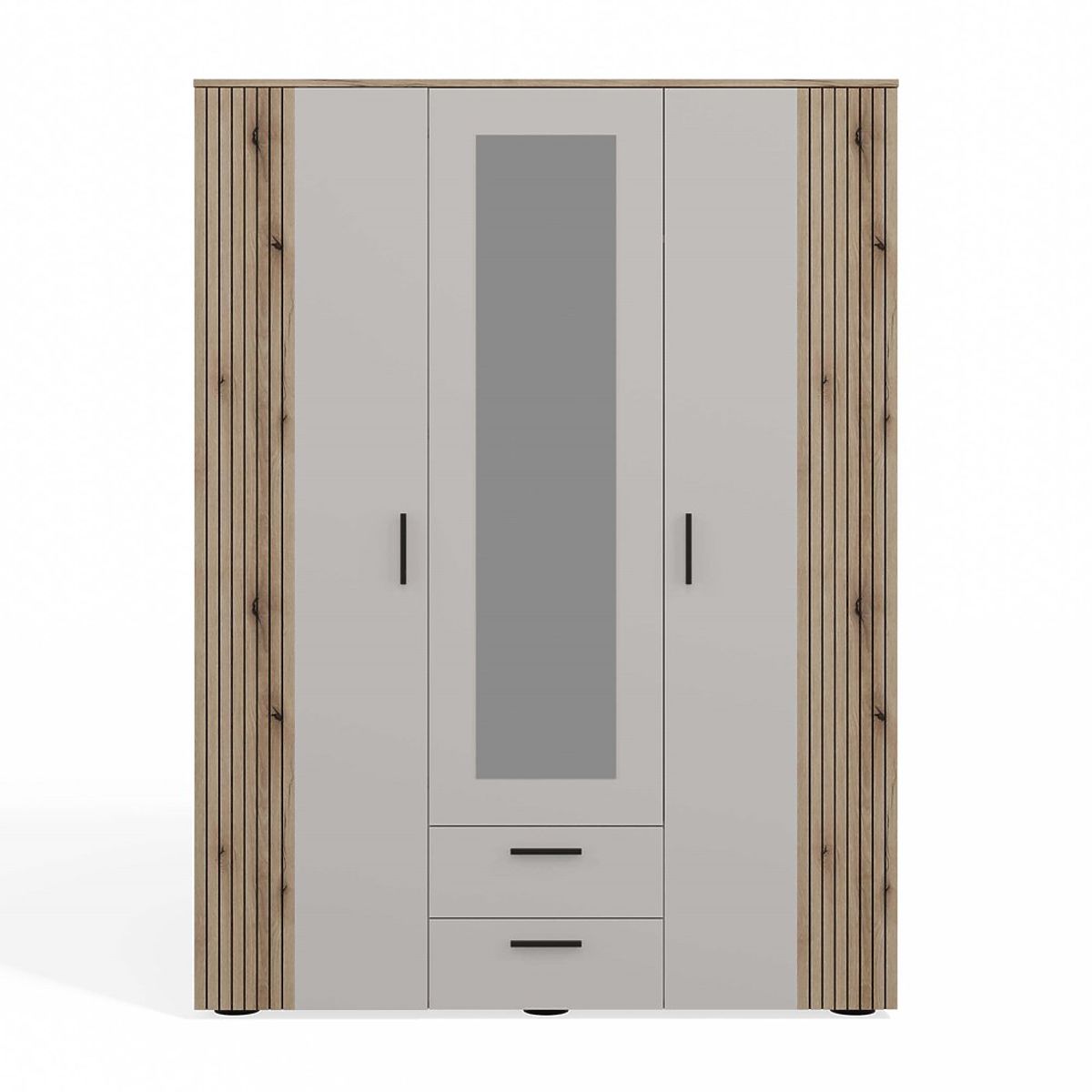 DULAP AVA 150 CM OGLINDĂ 2 SERTARE FAȚADĂ CANELATĂ STEJAR EVOKE BEJ CAȘMIR