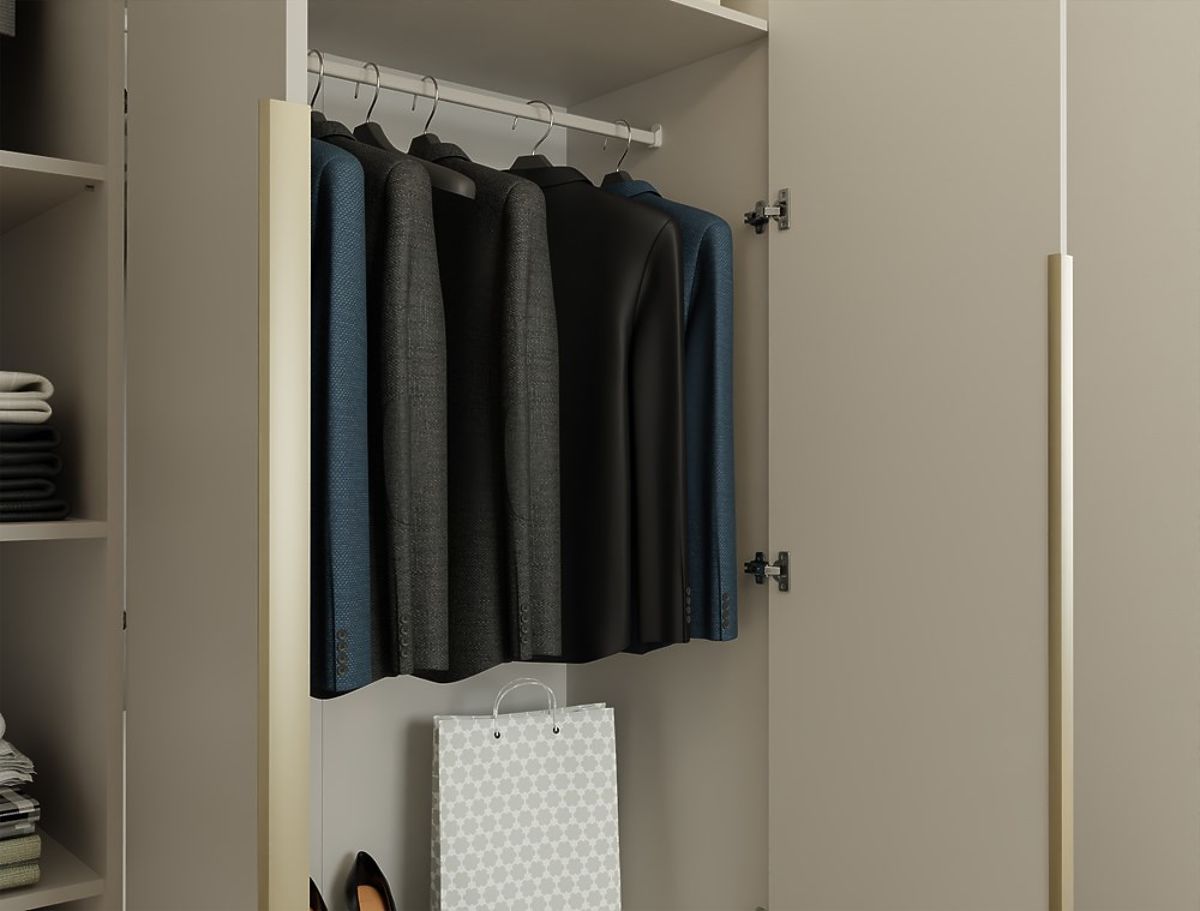 - Secțiune largă cu bară – așezare comodă a jachetelor, paltoanelor, costumelor și rochiilor lungi.