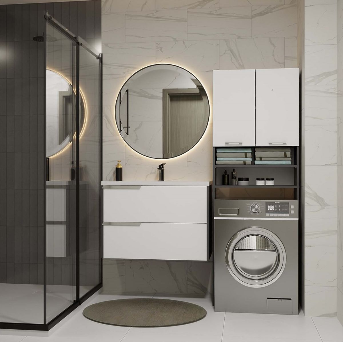 Dulap de Baie deasupra Mașinii de Spălat POLA DK ANTRACIT ALB Raft Coloană 180X64X30