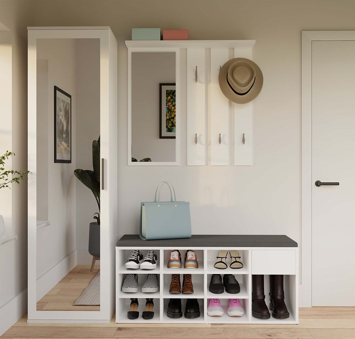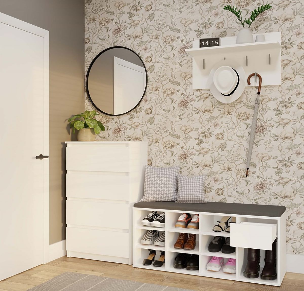 Dulap pentru pantofi TALLIN cu scaun și spațiu de depozitare generos. .. mai mult