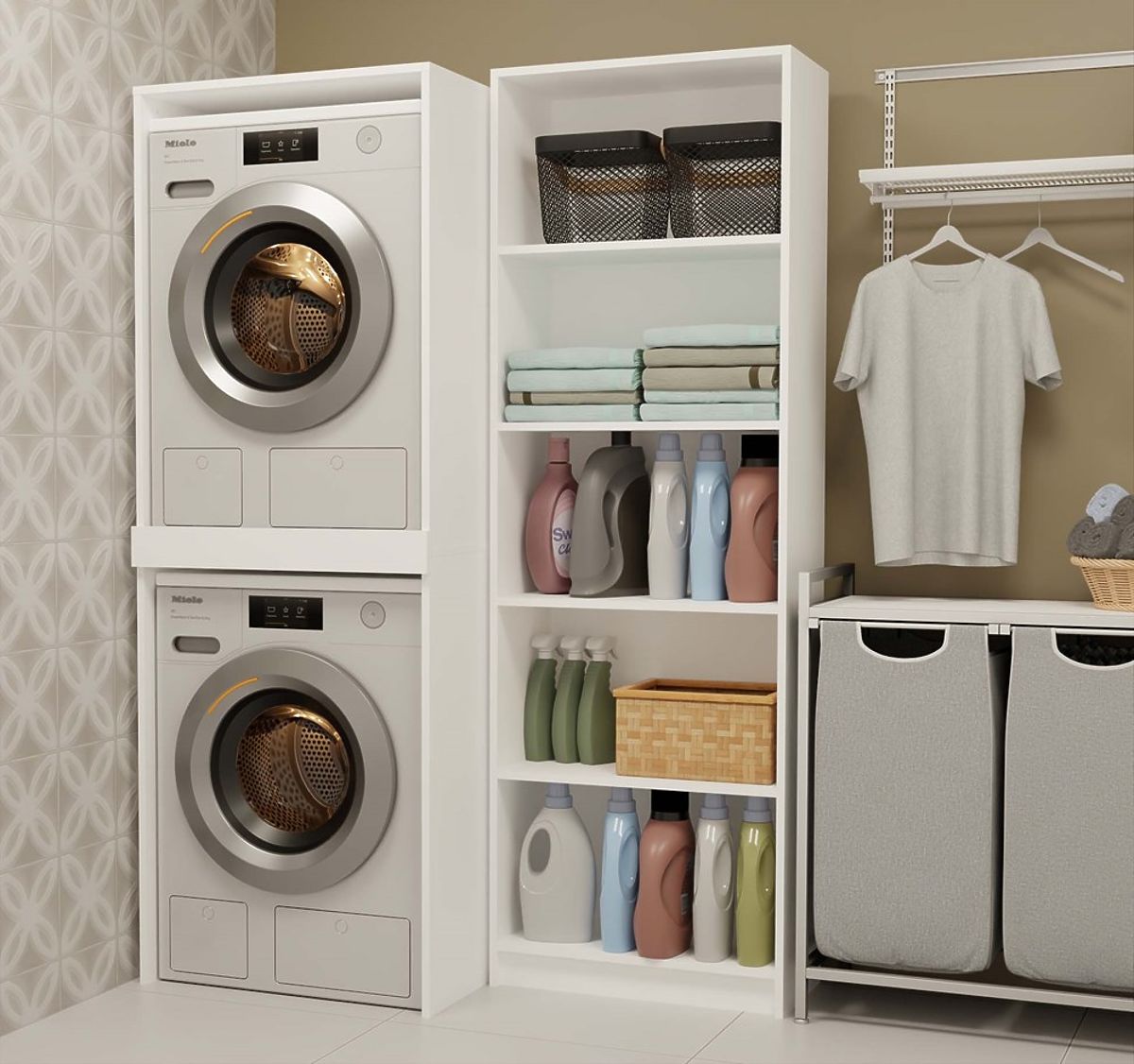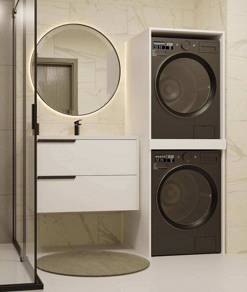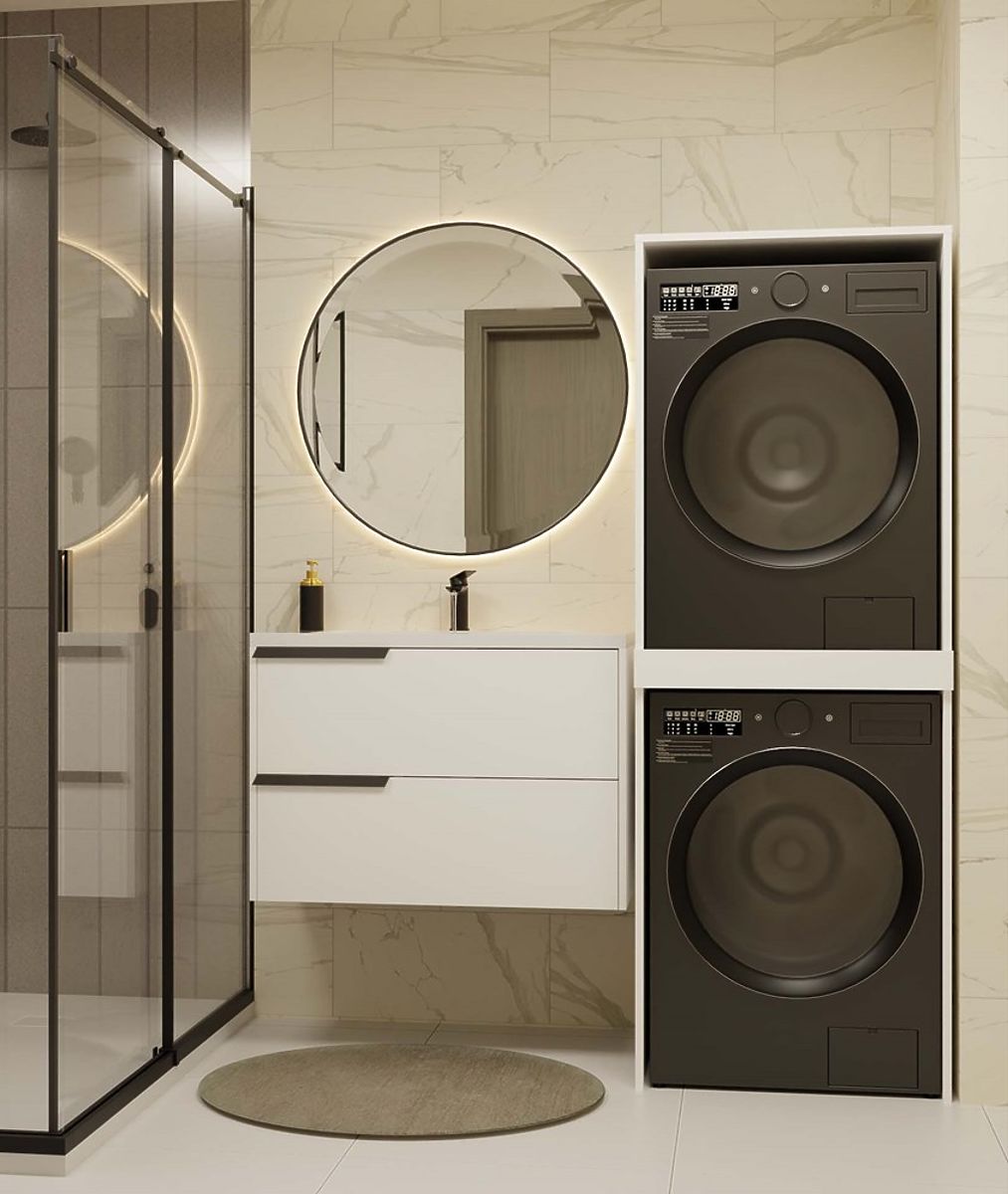 Dulapul POLA TWIN economisește spațiu în baie prin amplasarea verticală a electrocasnicelor. .. mai mult