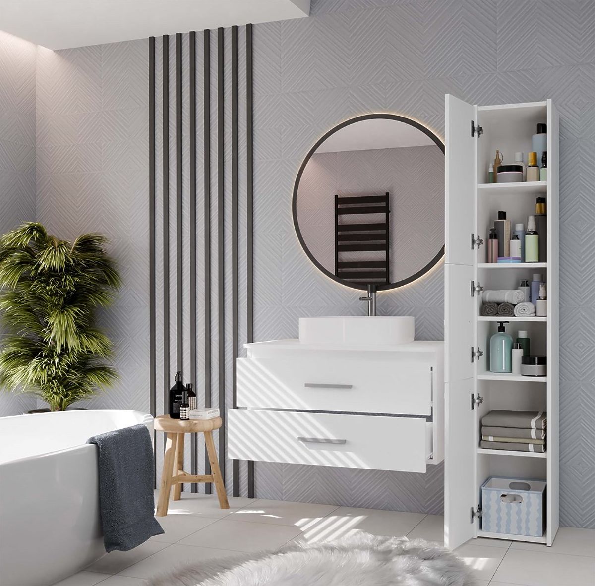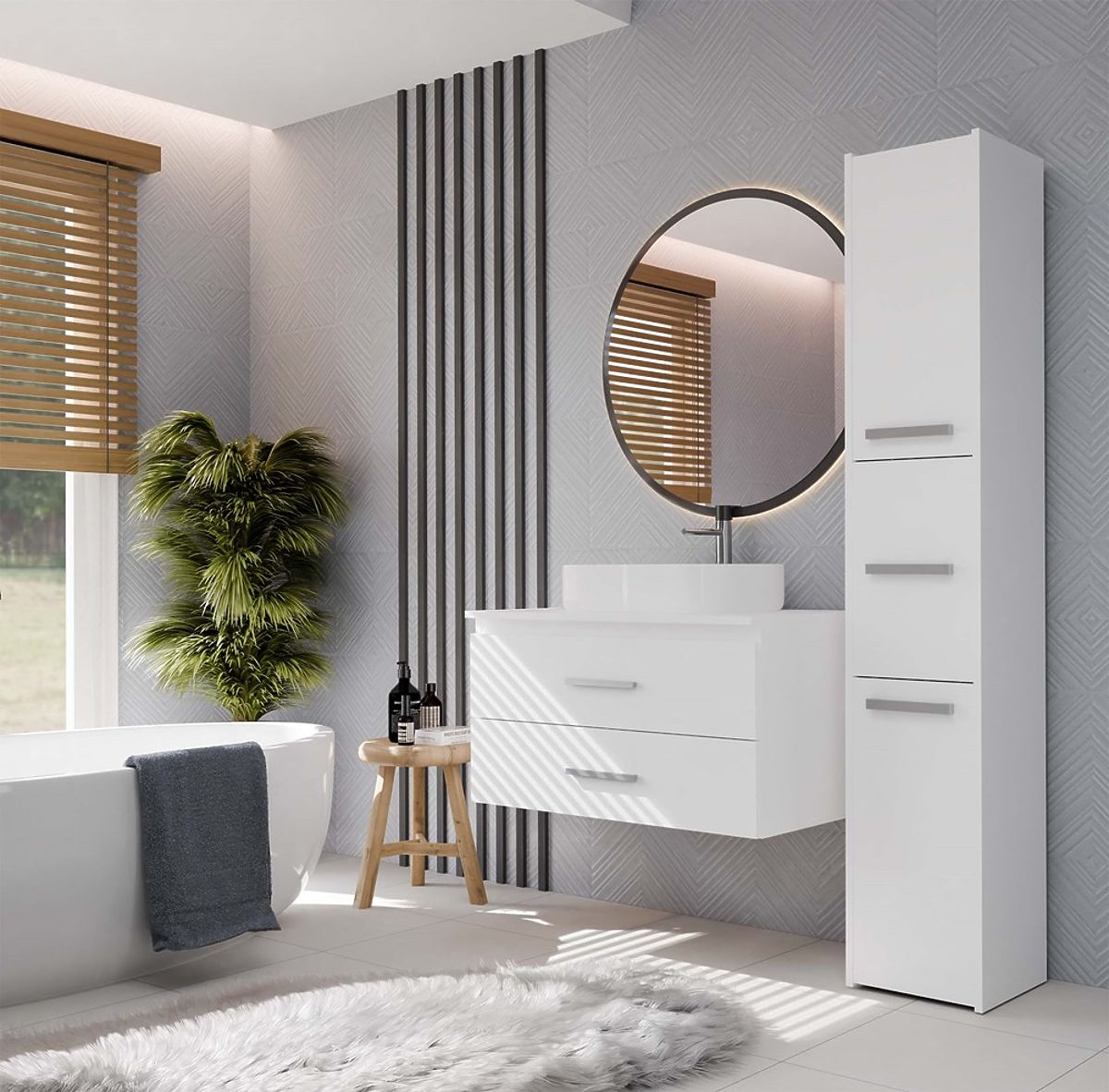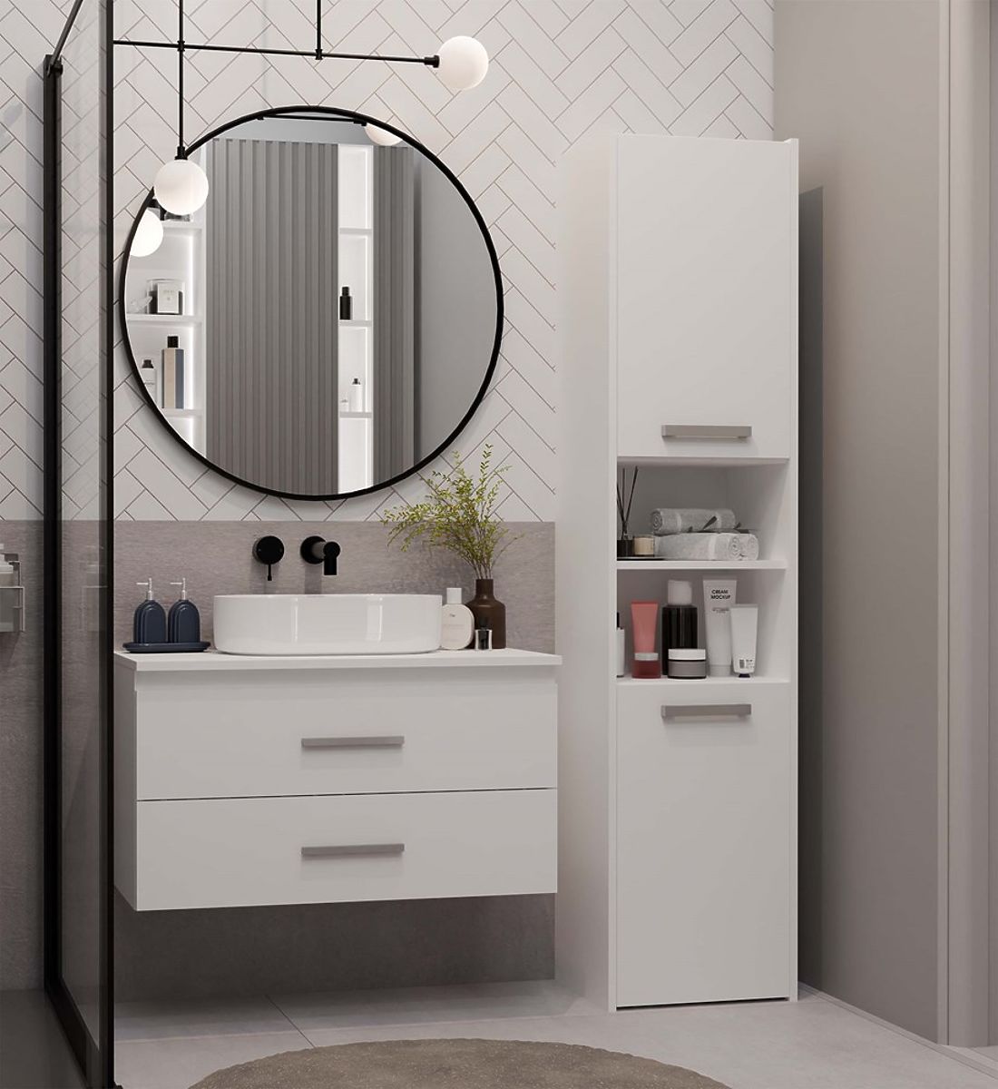 NEL 80 este un dulap de baie practic, ideal pentru interioare moderne, atât de dimensiuni medii, cât și mai mici.