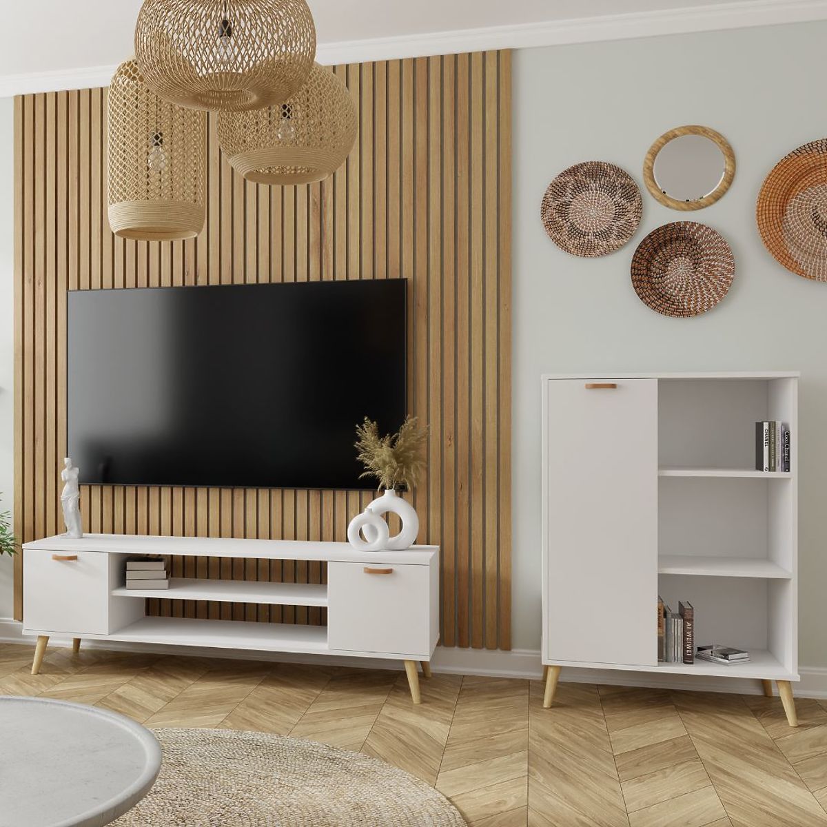 Dulapul FONDI este un mobilier extrem de practic, care combină simplitatea cu estetica inspirată de stilul scandinav. Datorită designului său elegant, se potrivește excelent în interioarele moderne, adăugându-le lejeritate și prospețime. Rafturile sale spațioase permit expunerea decorațiunilor preferate, cărților sau fotografiilor, permițând personalizarea interiorului și adăugarea unui caracter unic. Spațiile de depozitare practice ajută la menținerea ordinii și oferă loc pentru depozitarea diverselor obiecte.