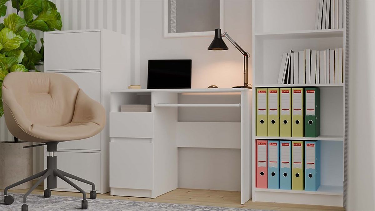 Birou alb Porto cu sertar și poliță pentru tastatură. .. mai mult