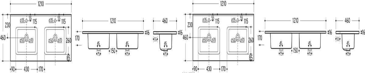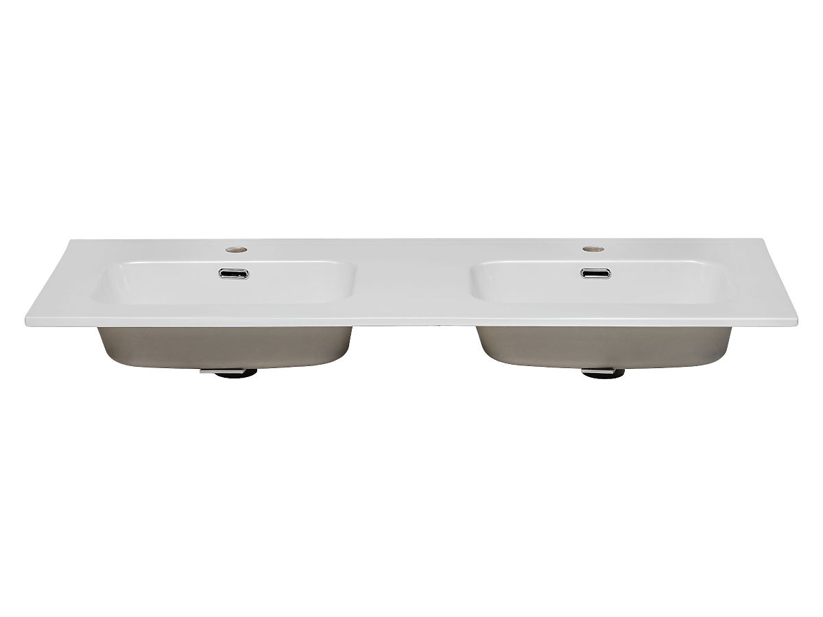 Chiuvetă de mobilier cu două compartimente, 120 cm, alb lucios, ceramică. .. mai mult