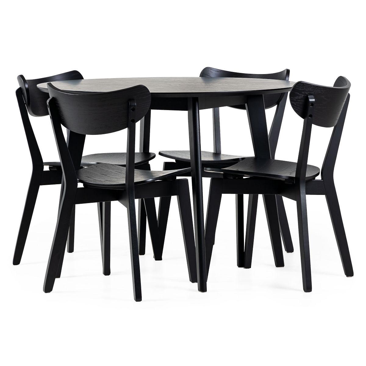 Set de masă Roxby cu masă rotundă și scaune negre. .. mai mult