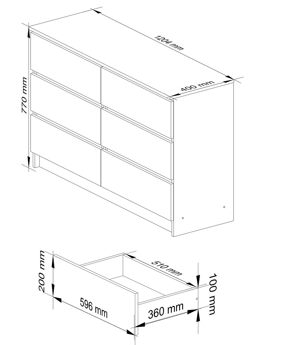 - Sertarele se mișcă pe șine metalice- Margini acoperite cu bandă ABS asigurând o protecție ridicată împotriva deteriorării