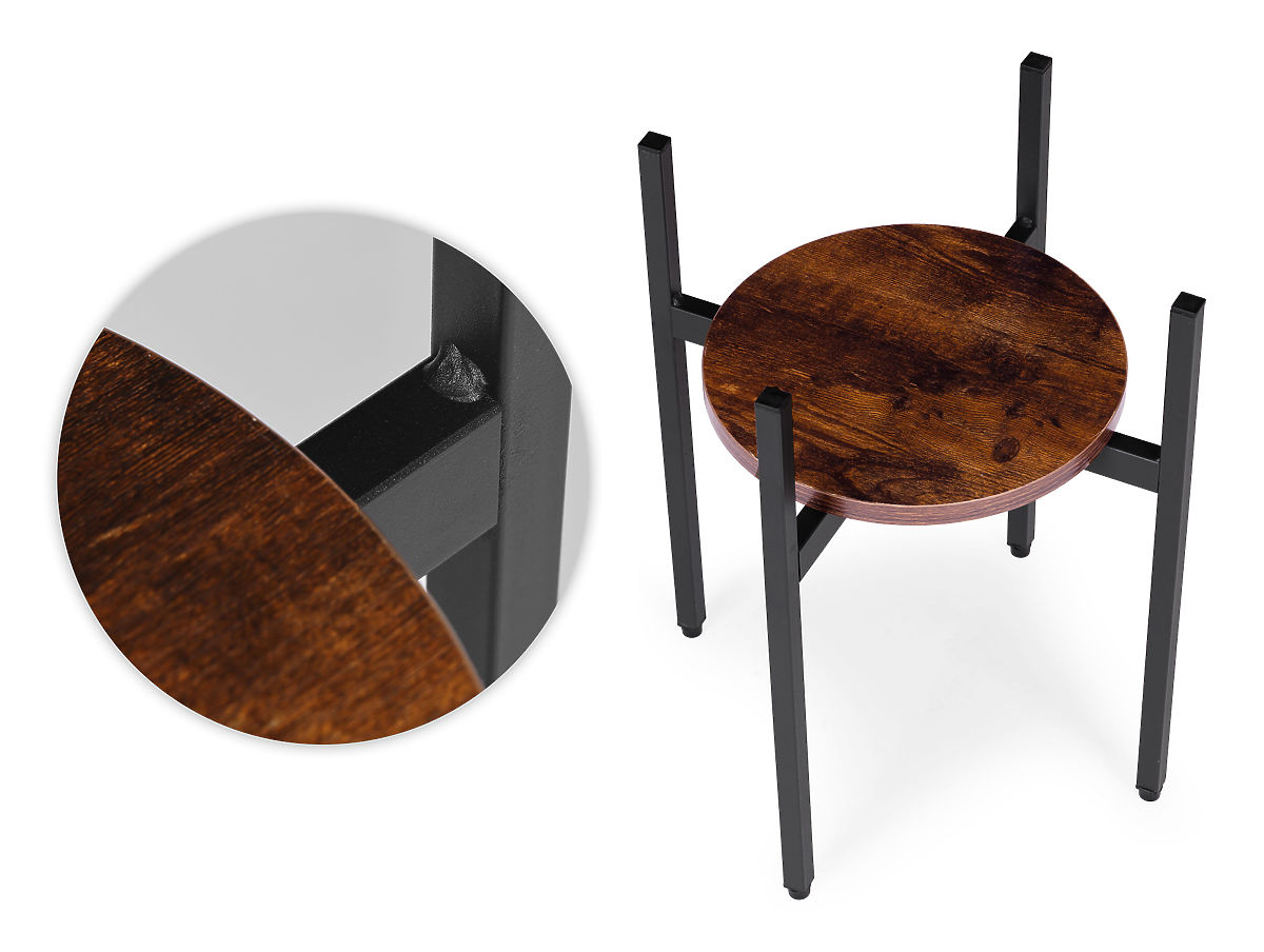 MATERIALE DURABILESuportul pentru flori este fabricat din oțel cu acoperire cu pulbere, asigurând rezistență la coroziune și deteriorare mecanică. Polița din PAL este finisată în culoare care imită lemnul natural, subliniind caracterul decorativ, loft al mobilierului.