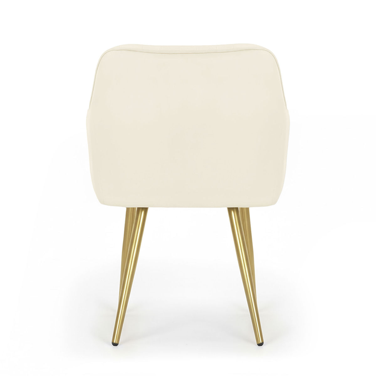 Scaun din catifea crem cu picioare aurii și cusături verticale. .. mai mult