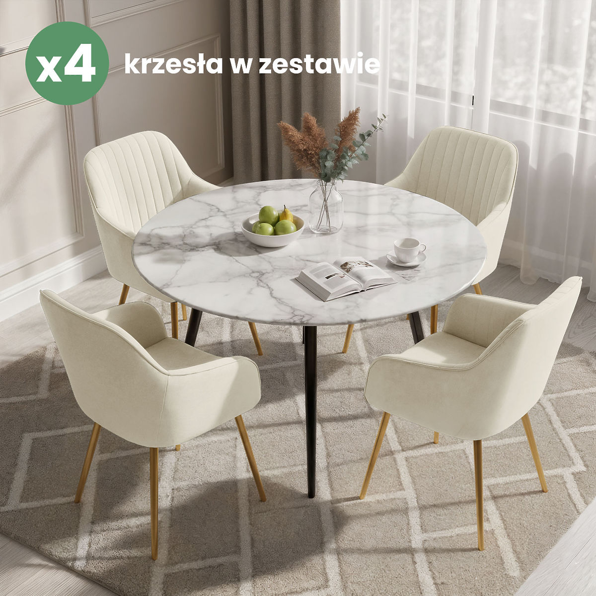 Lukahome.ro » sufragerie și bucătărie / mese scaun / 4x Scaun tapițat din catifea cu cusături Crem FLORENCE Picioare aurii