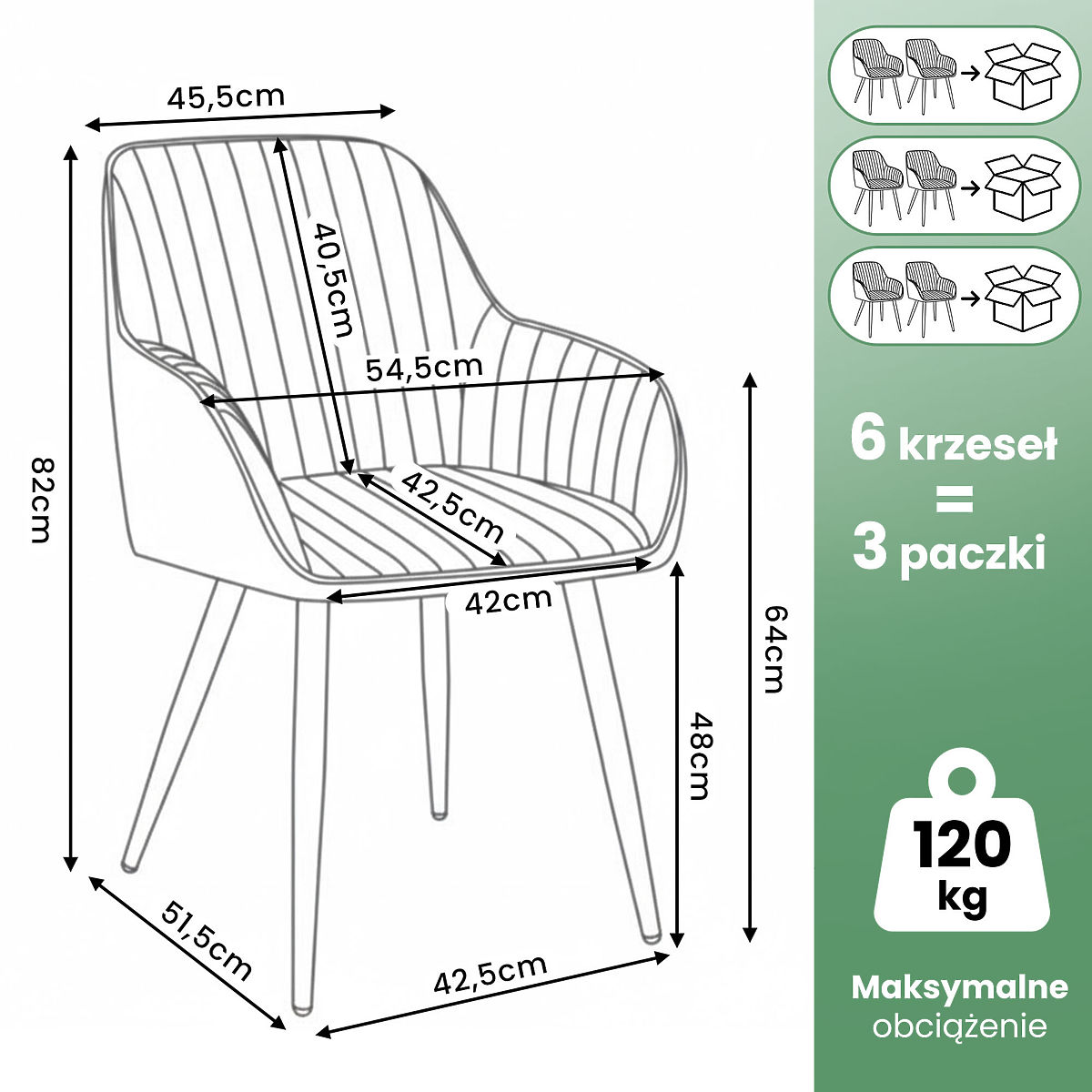 Scaunul din catifea FLORENCE se remarcă prin tapițeria elegantă cu cusături verticale, care îi conferă un farmec și un stil delicat. În funcție de varianta de culoare, picioarele scaunului pot fi negre sau aurii, oferindu-i un aspect și mai deosebit. Scaunul din catifea Florence va evidenția interiorul oricărei săli de mese moderne și va transforma o amenajare modestă într-un spațiu interesant și stilat. Acest model se potrivește cel mai bine în interioare de stil modern, soft modern sau glamour.