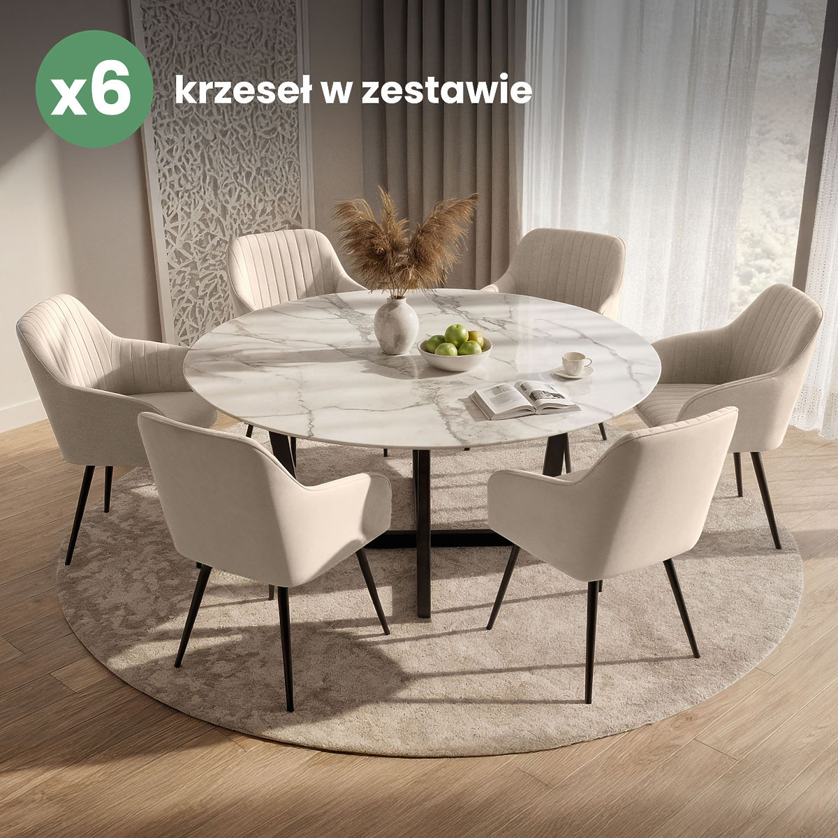 Lukahome.ro » sufragerie și bucătărie / mese scaun / 6x Scaun tapițat din catifea cu cusături verticale Bej FLORENCE Picioare negre
