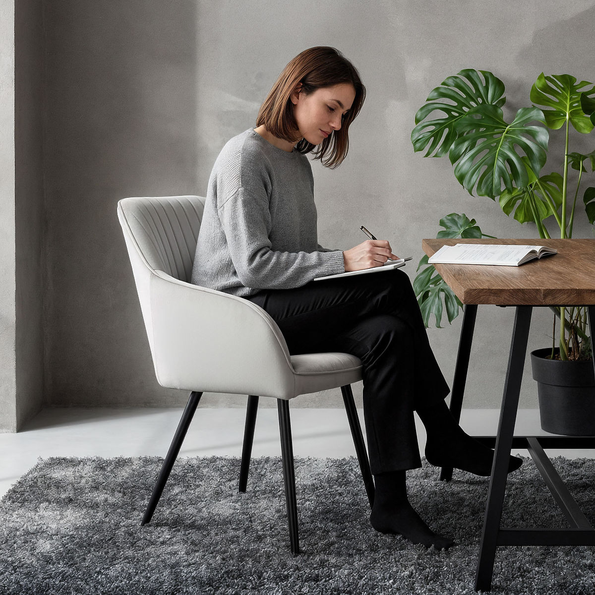 Scaunul din catifea FLORENCE se remarcă prin tapițeria elegantă cu cusături verticale, care îi conferă un farmec și un stil subtil. În funcție de varianta de culoare, picioarele scaunului pot fi negre sau aurii, oferindu-i un aspect și mai deosebit. Scaunul din catifea Florence va evidenția interiorul oricărei săli de mese moderne și va transforma o amenajare modestă într-un spațiu interesant și stilat. Acest model se potrivește cel mai bine în interioare moderne, soft modern sau glamour.