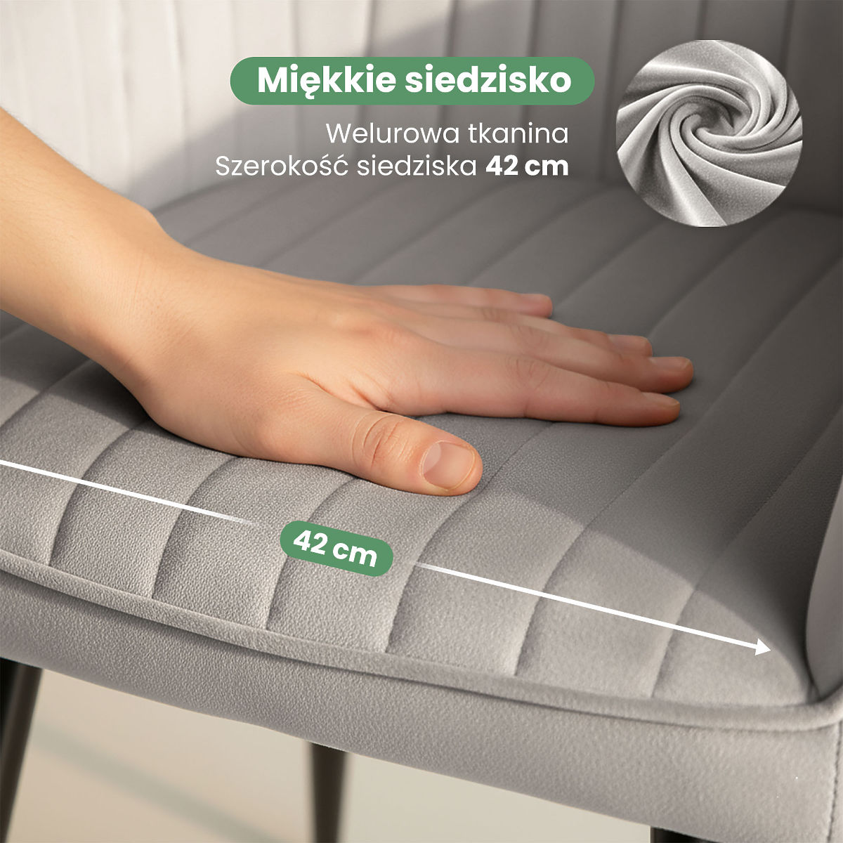 Scaun din catifea FLORENCE cu cusături verticale și picioare negre. .. mai mult
