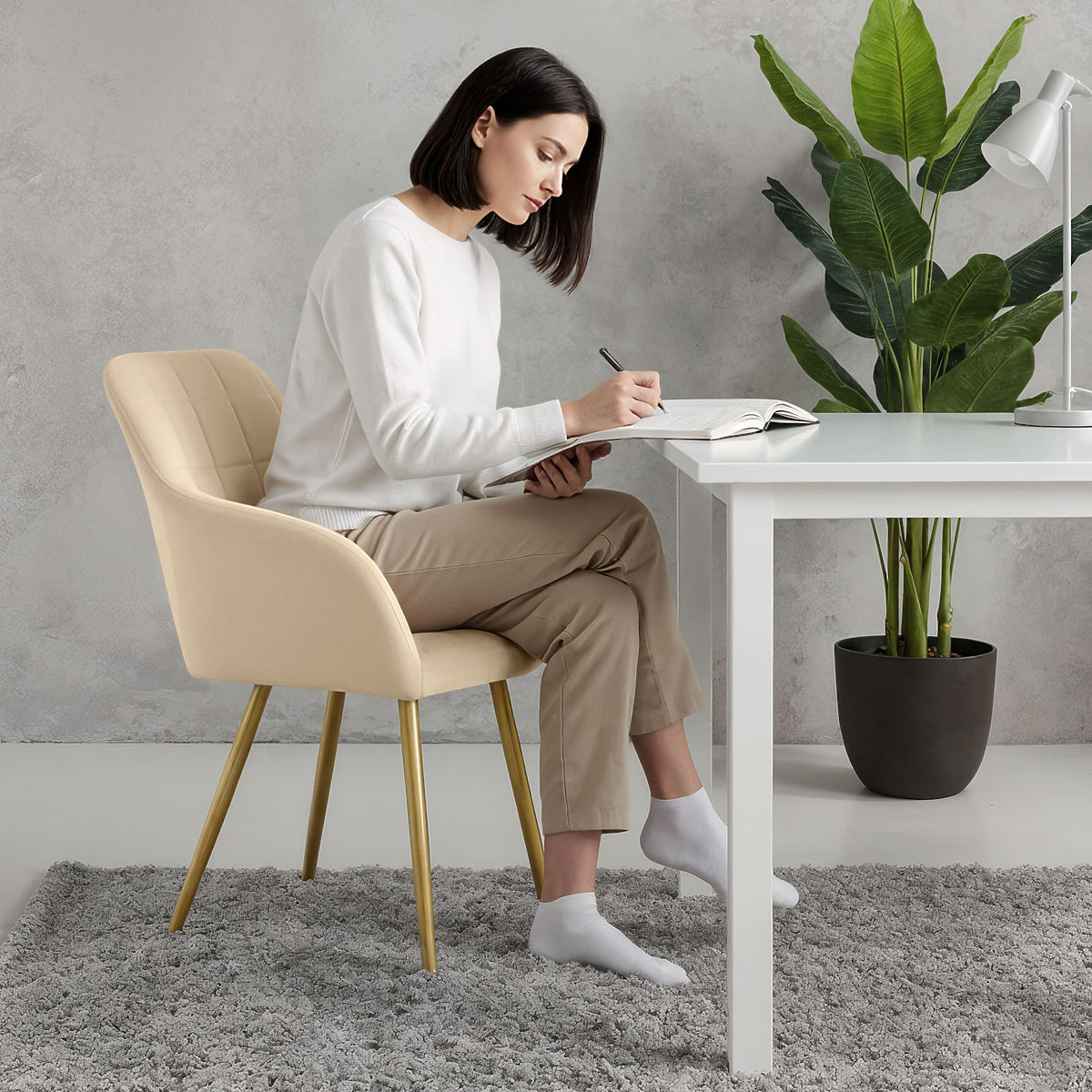 Scaunele LUXANO bej cu picioare aurii și cusături pătrate. .. mai mult