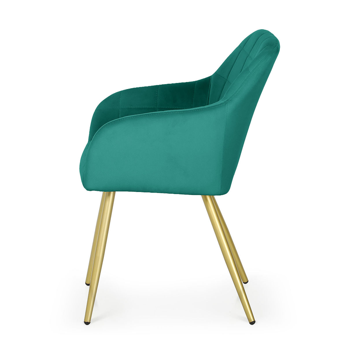 Lukahome.ro » Sufragerie și bucătărie / Scaune de sufragerie / 6x Scaun tapițat cu cusături pătrate Verde Smarald LUXANO Picioare aurii