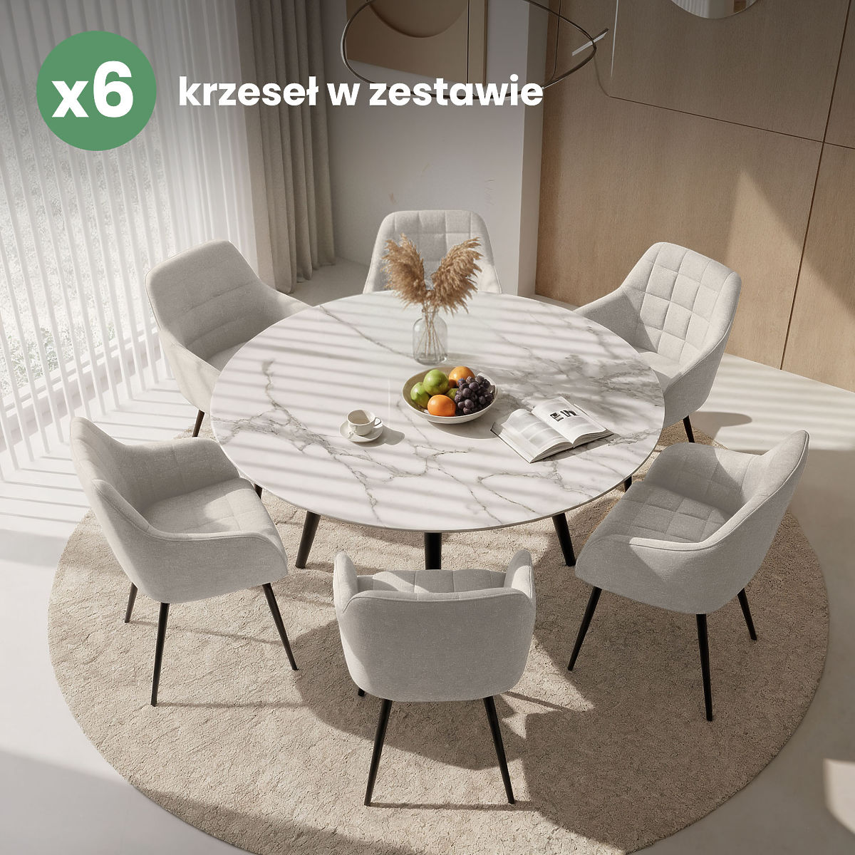 Lukahome.ro » sufragerie și bucătărie / mese scaun / 6x Scaun tapițat cu cusături pătrate Crem LUXANO Picioare negre material Lumos