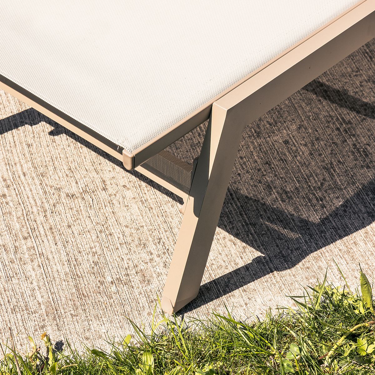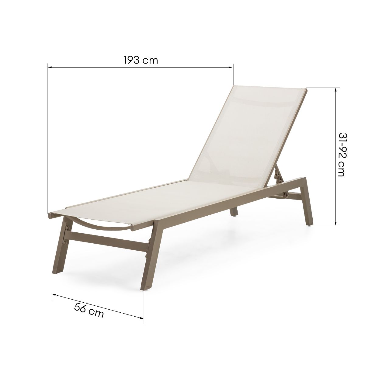 Șezlong de grădină din aluminiu și poliester bej, reglabil în 5 poziții. .. mai mult