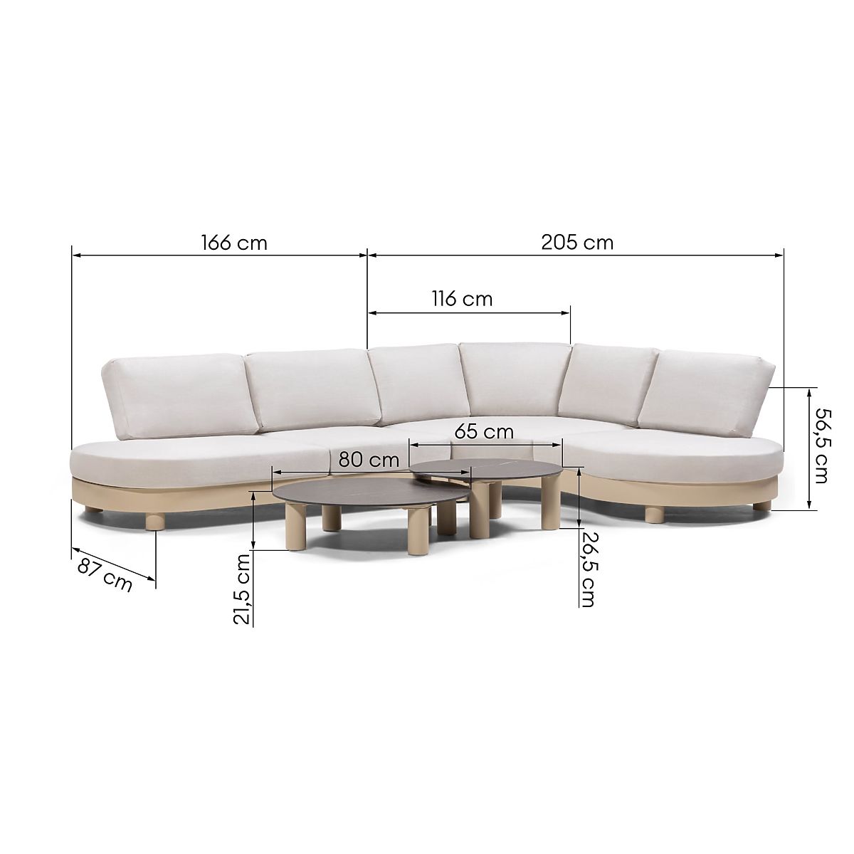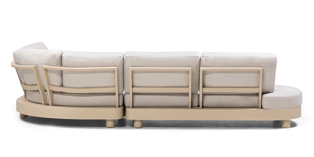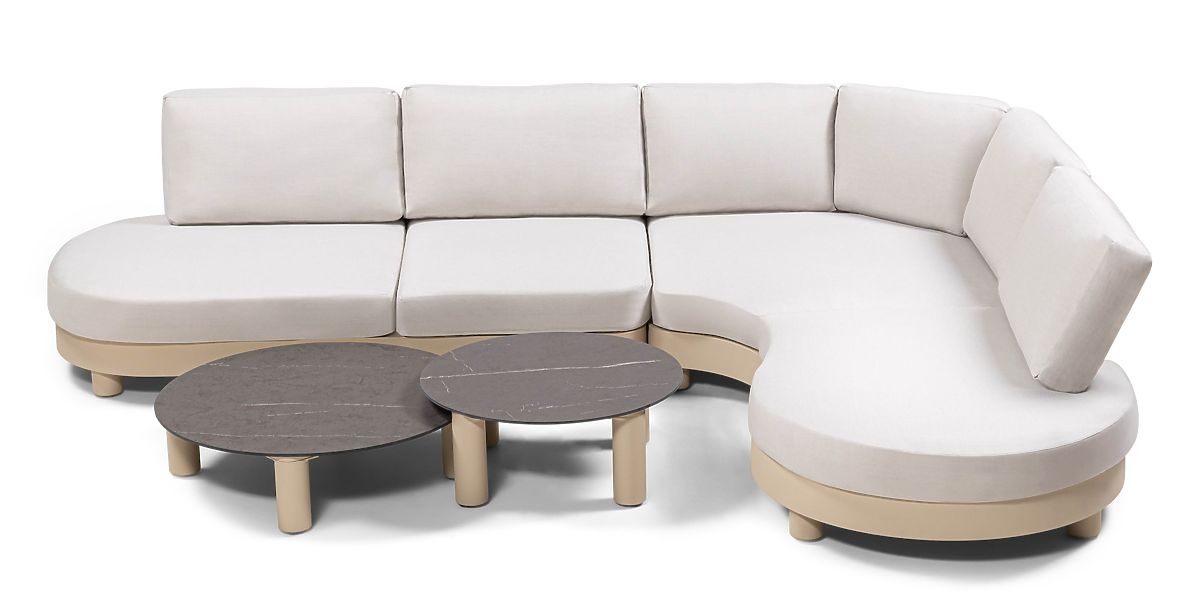 Lukahome.ro » Mobilier de grădină / Canapele de grădină / Canapea de colț pentru grădină cu 2 mese Santa Ana, aluminiu, bej, decor marmură, forme rotunjite