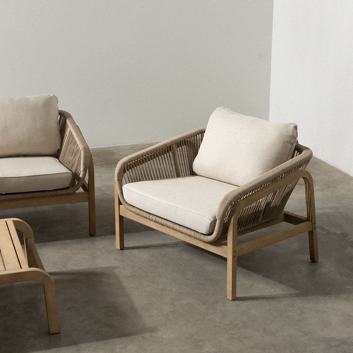 Set de grădină Belpasso cu lemn de eucalipt și împletitură decorativă. .. mai mult