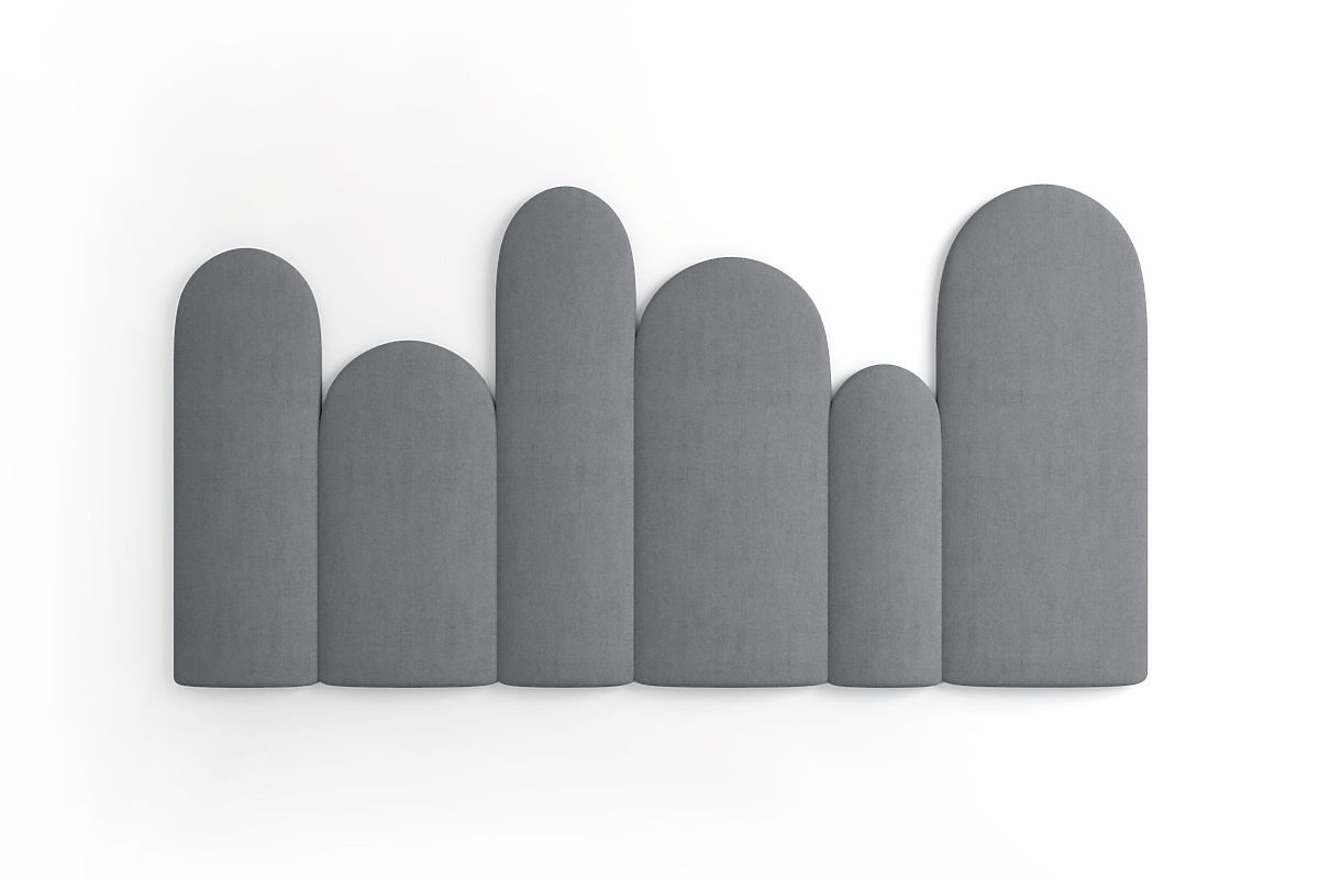 Setul de panouri tapițate este o soluție originală pentru a înviora camera copilului sau dormitorul. Conține 6 module cu marginea superioară rotunjită, amintind de un gard, care pot fi combinate liber pentru a crea propriile aranjamente pe perete. Panourile sunt fabricate cu accent pe calitate, siguranță și confort. Designul gri este universal și se combină ușor cu alte mobilier și accesorii.