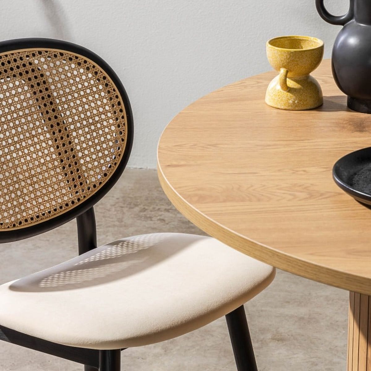 Lukahome.ro » Sufragerie și bucătărie / Scaune de sufragerie / Scaun din lemn Monet cu împletitură vieneză, ratan, catifea, negru/bej
